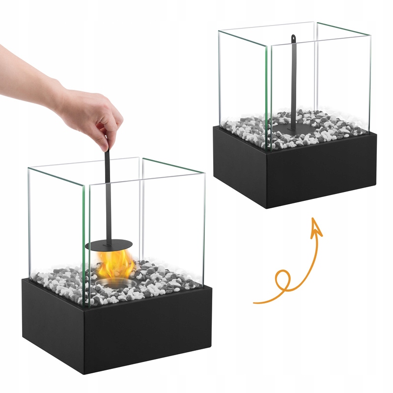 - - 🔥Настільний камін: Матеріали: загартоване скло, нержавіюча сталь; Колір: чорний; Розміри: 24,5 х 20,5 х 28,7 см. Комплектація: основа, скляна кришка, гніт, спиртова вставка, вогнетривкий камінь, вогнезахисна перегородка, інструкція (без спирту).