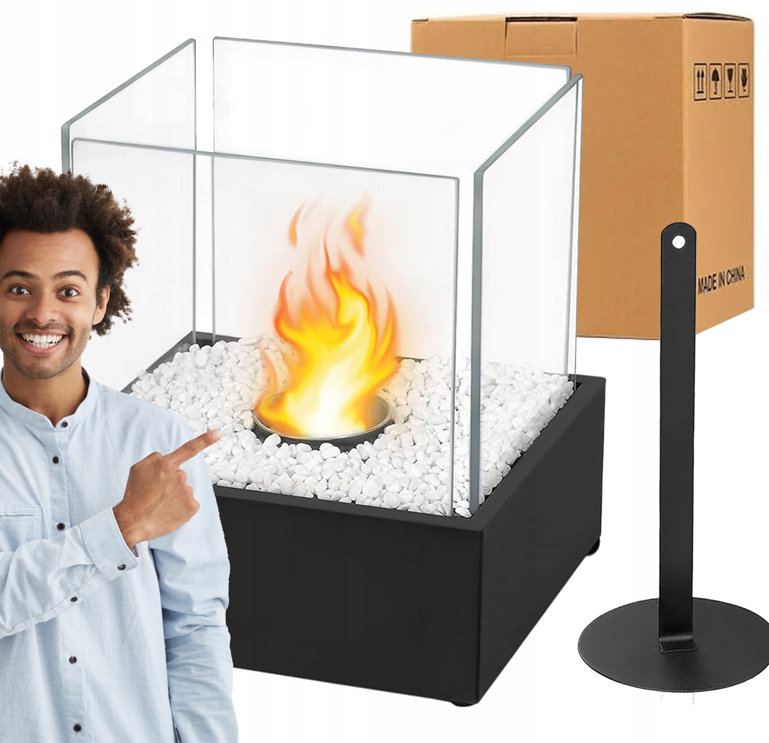 - - 🔥Високоякісні матеріали: цей настільний камін виготовлений із загартованого скла та має міцну сталеву основу з чорним порошковим покриттям. Він витримує температуру до 210°C, легкий і портативний.