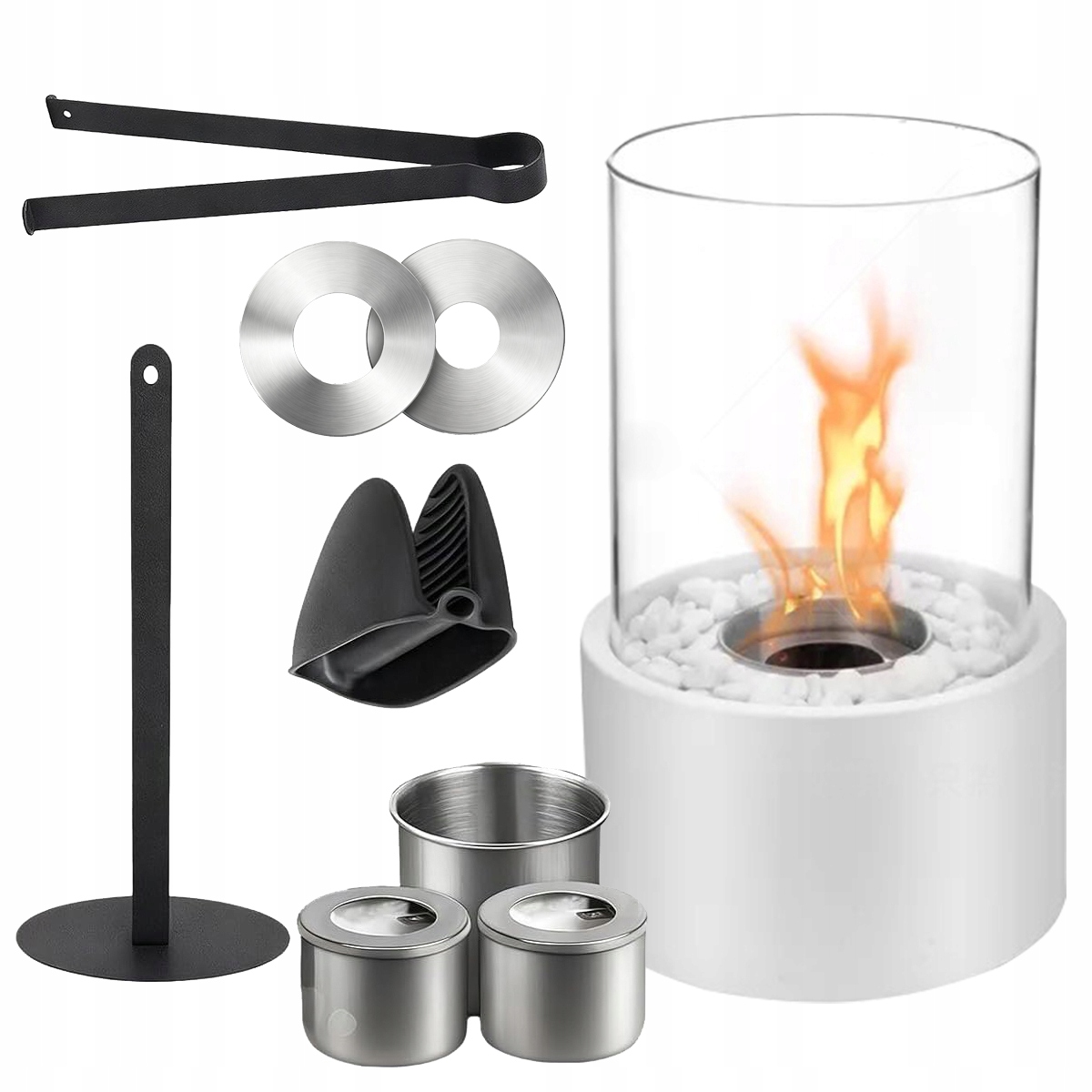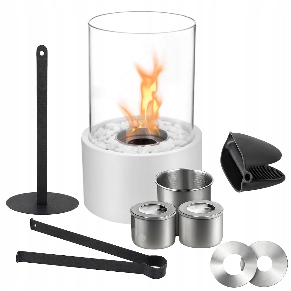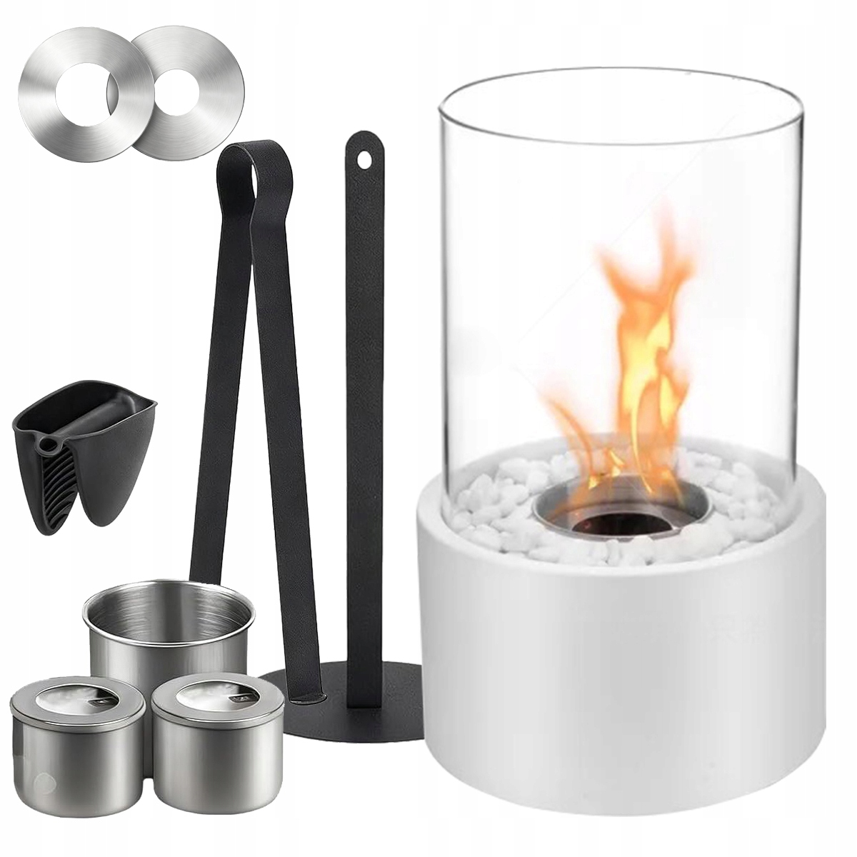 Загальні розміри прибл. 16 см в діаметрі х 27 см у висоту. Завдяки сучасному вигляду та чистим лініям цей білий камін ідеально впишеться в будь-який житловий простір. На терасі, в саду чи на журнальному столику настільний камін привертає увагу та прикрашає оточення завдяки своєму декоративному характеру.