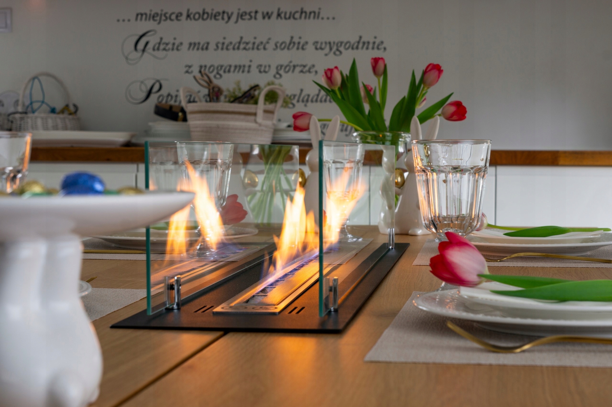 Вставка розпалюється за допомогою біопалива, а пальник має додатковий захист у вигляді біовставки. Це дозволяє вогню горіти рівномірно > і >захищає рідину від розливання.