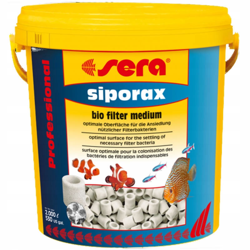 Оригінальний sera siporax Professional підходить для використання як у прісноводних, так і в морських акваріумах, а також у ставки. Незалежно від типу фільтра (внутрішній/зовнішній/відстійник), він збільшує площу поверхні, необхідну для біологічного очищення, і забезпечує оптимальне середовище існування для необхідних фільтруючих бактерій. Sera filter biostart, що входить до набору, містить очищувальні бактерії, які біологічно активують sera siporax Professional одразу після додавання та починають розкладання забруднень у воді.