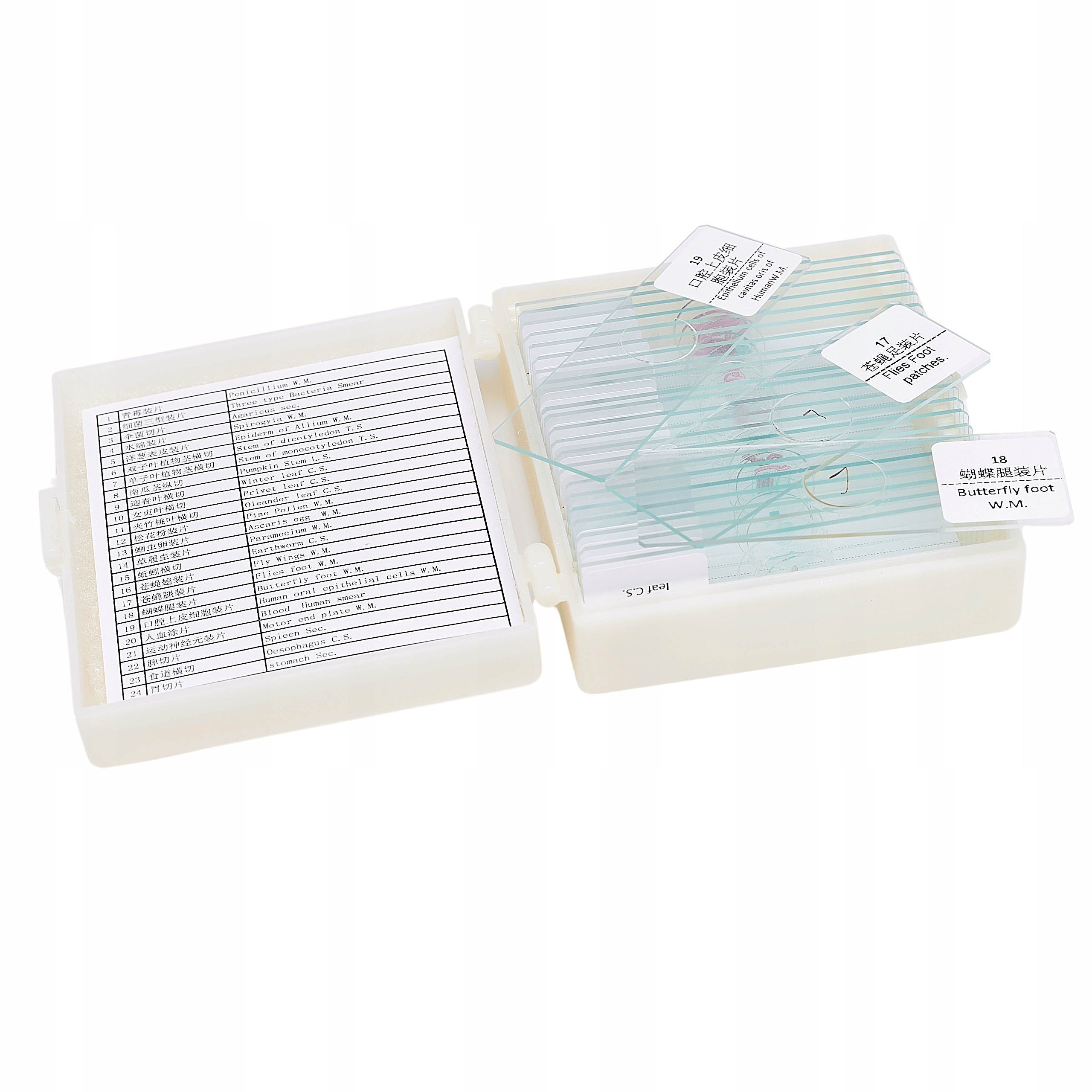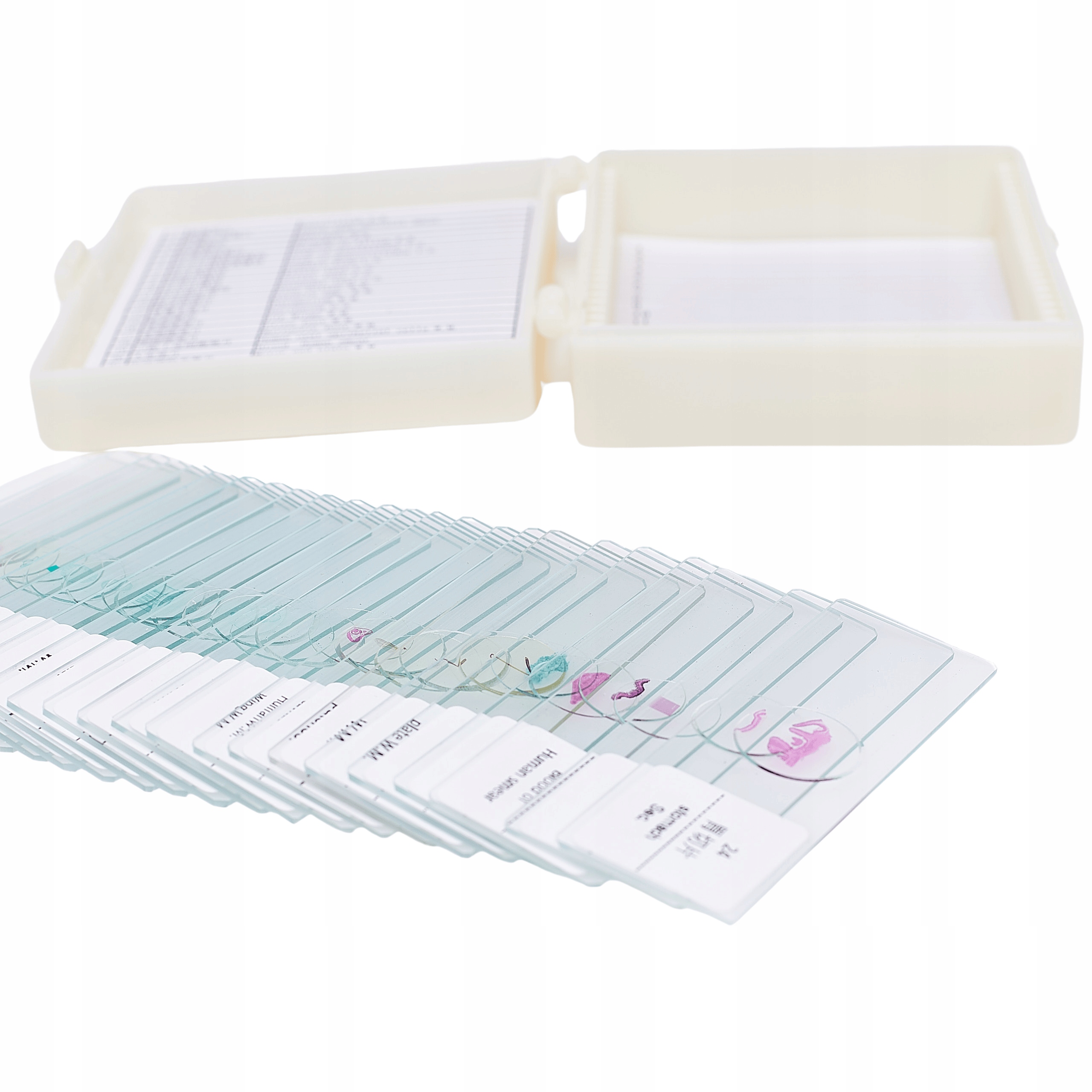 набір з 25 біологічних препаратів високої якості в галузі анатомії, зоологічної та ботаніки, розробленої для спостереження під мікроскопом. Набір ідеально підходить для домашніх спостережень та тих, хто в професійній лабораторії.