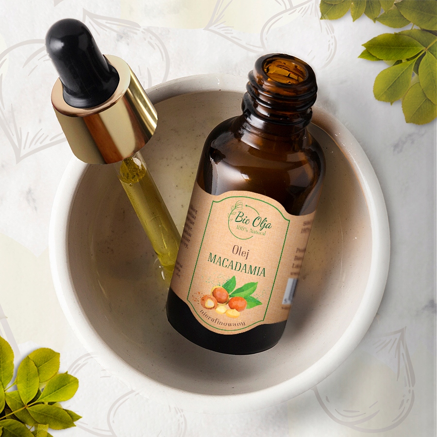 Олія макадамії — це 100% натуральна нерафінована олія холодного віджиму, яка має різноманітне застосування. Дуже добре та швидко вбирається, не залишаючи відчуття жирності. Ідеально підходить для всіх типів шкіри, особливо для сухої, зрілої, в’ялої шкіри зі шрамами та розтяжками. Рекомендується також для догляду за немовлятами. Захищає шкіру від втрати води та уповільнює процес старіння. Інтенсивно зволожує, живить і відновлює. Масажі з олією макадамії підтримують боротьбу з целюлітом. Він також має освітлюючі властивості для шрамів і розтяжок.