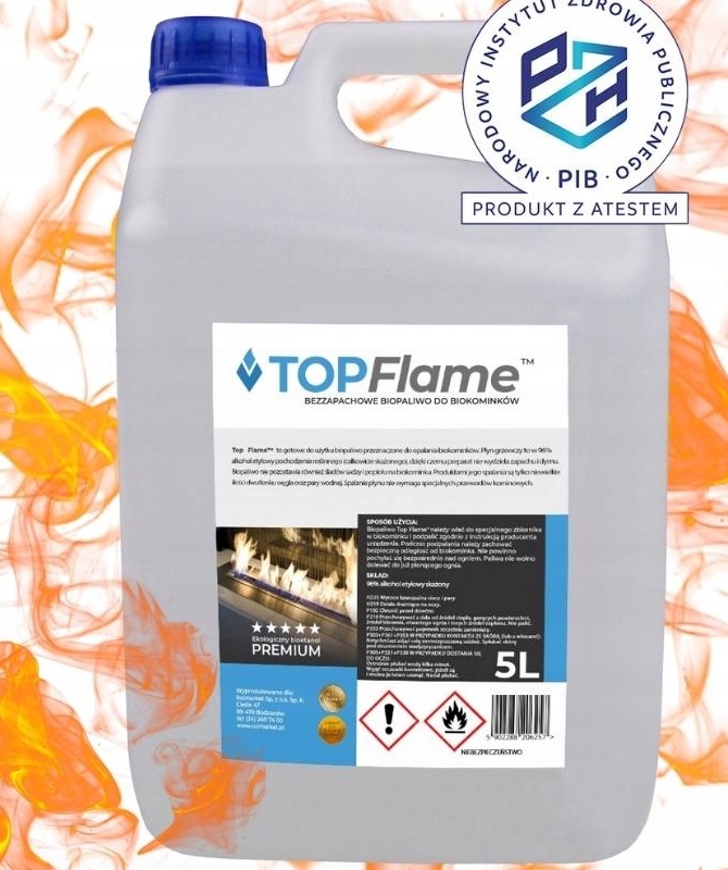 Паливо TOP FLAME отримало позитивну оцінку від Департаменту токсикології та оцінки ризиків для здоров'я Національного інституту громадського здоров'я - Національного інституту гігієни щодо безпеки для людини та навколишнього середовища за умови його використання відповідно до цільового призначення та рекомендацій, наведених на етикетці або в інструкції із застосування.