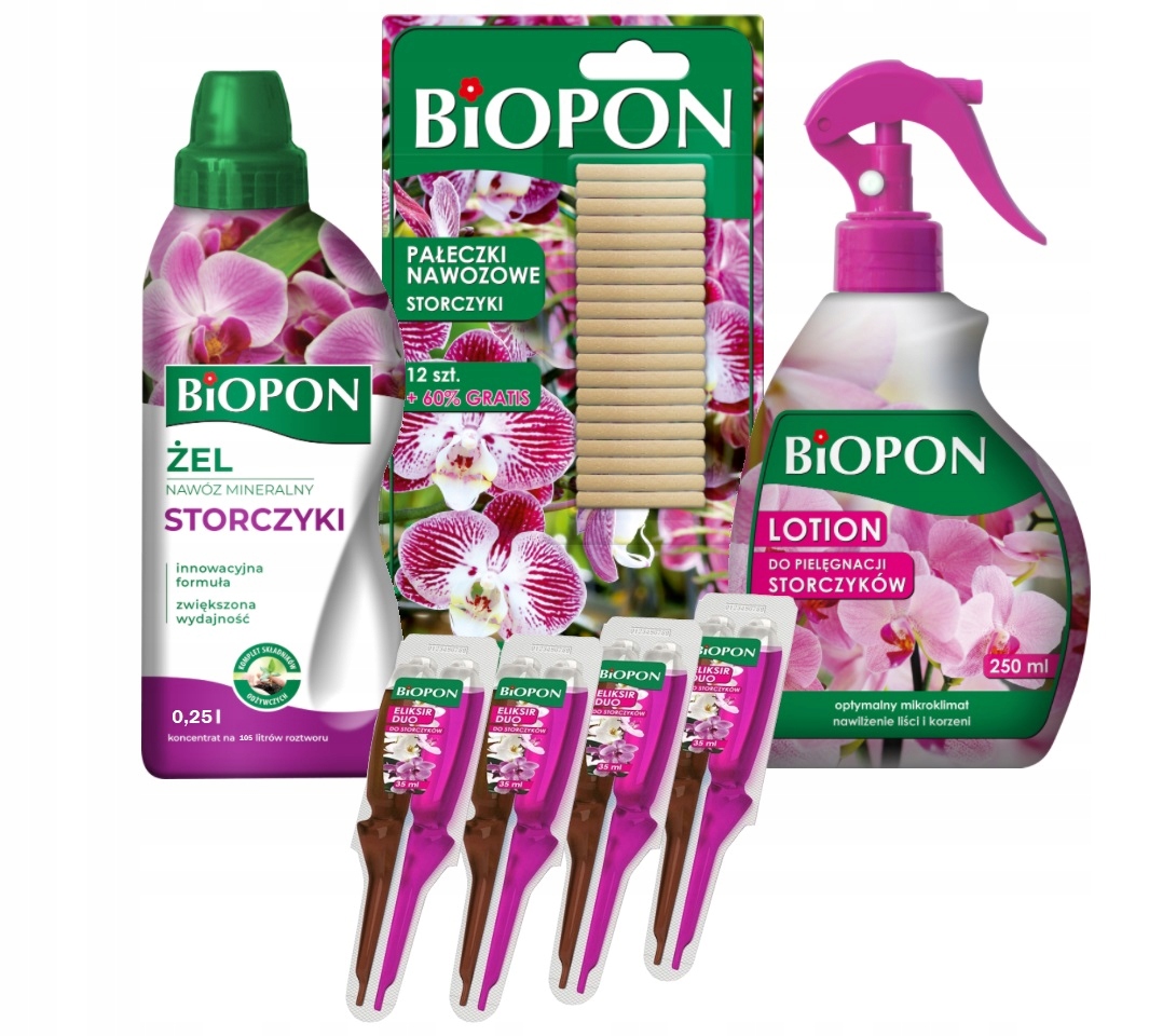 - Еліксир BIOPON DUO для орхідей живить і відновлює 4x35 мл - інноваційний двокомпонентний препарат, призначений для живлення та швидкої регенерації всіх видів орхідей. Особливо рекомендований для проблемних квітів (повільний ріст, погане цвітіння, сухі коріння), рожевий кондиціонер забезпечує орхідею основним харчуванням, необхідним для правильного росту та цвітіння, а коричневий регенератор зміцнює, зменшує стрес, спричинений пересадкою чи неправильним доглядом та відновлює його загальний баланс;