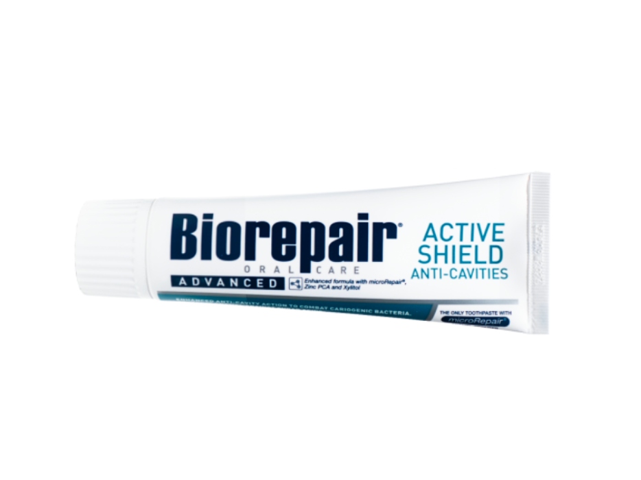 Інноваційна формула BioRepair Active Shield ефективно запобігає утворенню та розвитку зубного нальоту завдяки синергічній дії ксиліту та іонів цинку (PCA). Продукт ефективно захищає емаль від карієсних процесів, одночасно відновлюючи та відновлюючи наявні карієси. Завдяки цій пасті ви можете забути про підвищену чутливість зубів. Крім того, засіб зміцнює ясна та слизову оболонку, ідеально підходить для щоденного використання.