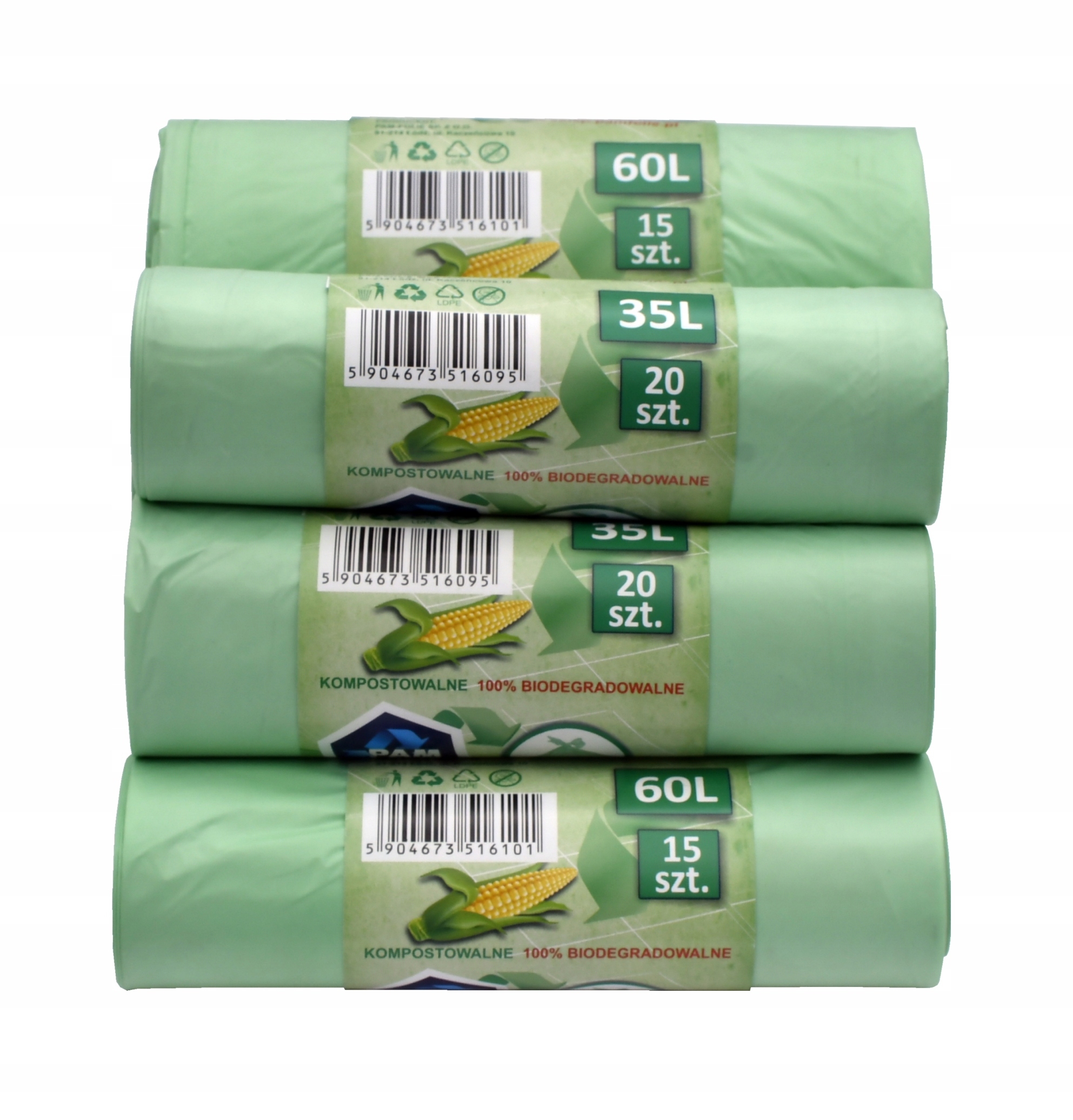 - Мішки не містять поліетилену, вони на 100% компостуються - виготовлені з кукурудзяного крохмалю
