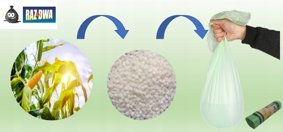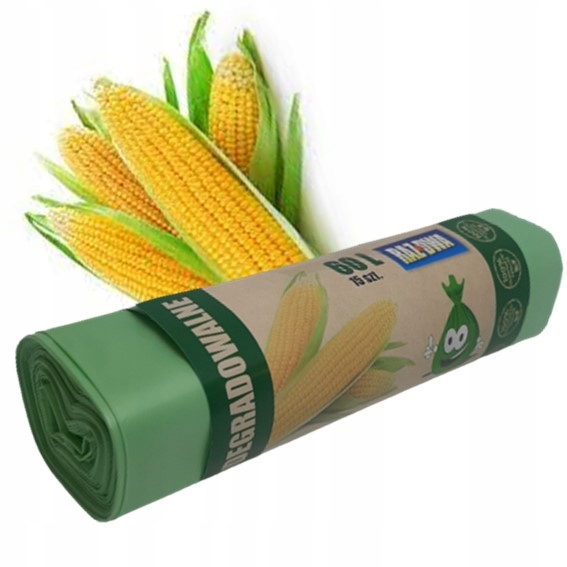 Біорозкладані пакети з рослинної сировини, такої як: борошно, кукурудзяний крохмаль, зерно злаків. Призначений для органічних відходів. Мішки для невеликих контейнерів.