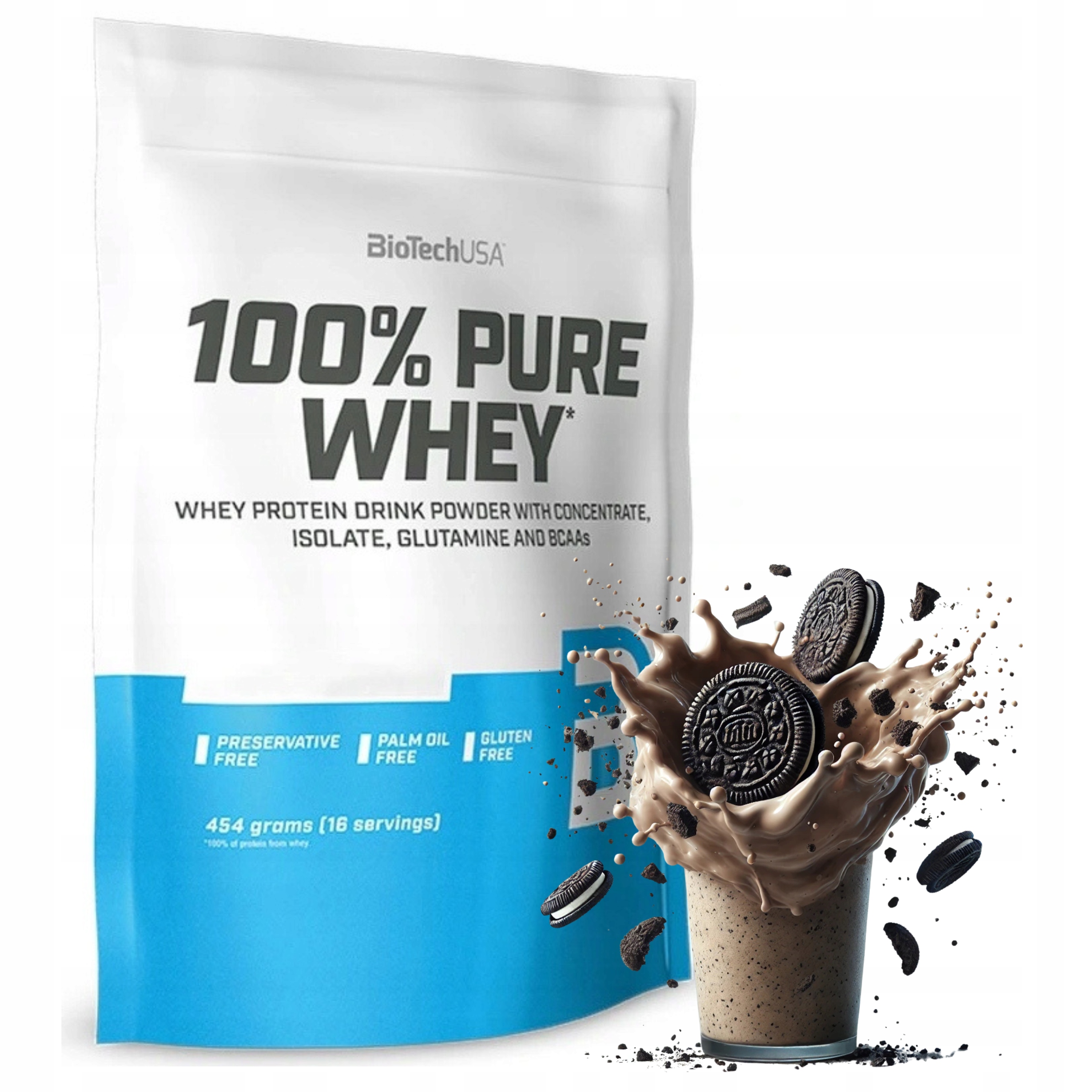 BioTech 100% Pure Whey 454g Protein WPC Cookie / Чорне печиво