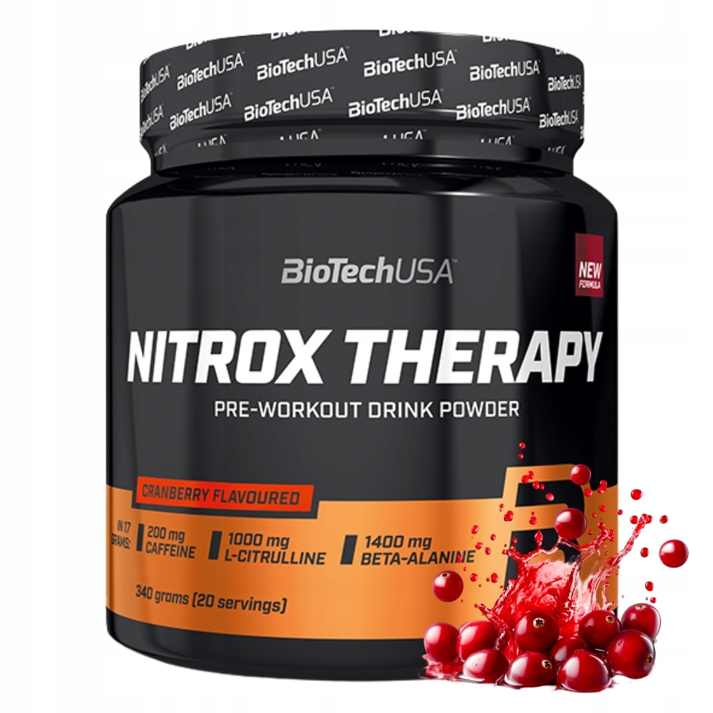 Biotech USA Nitrox Therapy - дієтична добавка, яка стимулює фізичні навантаження, особливо під час силових тренувань , таких як виконані у тренажерному залі. Він містить унікальну суміш амінокислот , які підтримують організм, забезпечуючи його відповідними поживними речовинами, вдосконалюючи м’язову оксигенацію та підтримуючи їх розвиток . Завдяки цьому продукту ви можете ефективно збільшити м’язову масу, силу та ефективність організму. Інгредієнти цієї підготовки рекомендуються спеціально для спортсменів та регулярних тренувань для сили.