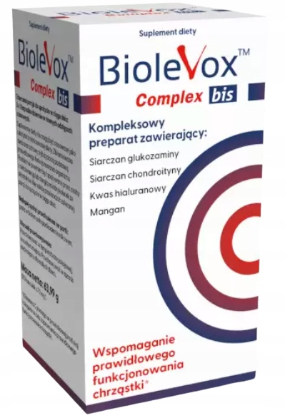 Biolevox™ Complex bis доповнює дієту глюкозаміну сульфатом, хондроїтину сульфатом, гіалуроновою кислотою, марганцем і вітаміном С.