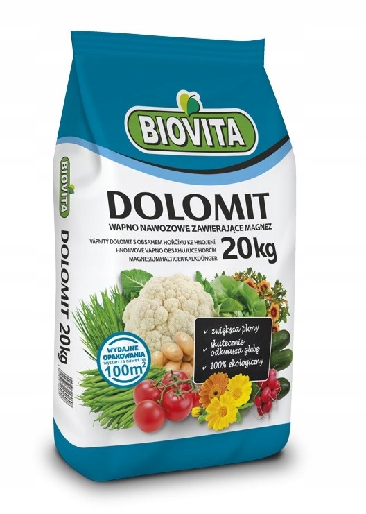 Доломіт – це продукт з високим вмістом карбонату кальцію та магнію. Призначений для розкислення і підживлення кислих, бідних на поживні речовини елементи грунту. Рекомендується для використання на всіх типах ґрунт. Тому він виконує подвійну роль: розкислює ґрунт і підвищує його вміст вміст магнію і кальцію. Він також надає низку інших елементів і мікроелементів, які позитивно впливають на рослинність і урожайність рослин.