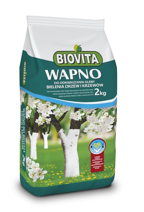 Вапно для побілки дерев від Біовіта є натуральним продуктом походження. Вапно не містить токсичних речовин, воно 100% безпечний для рослин. Інгредієнти, що містяться в продукті, збільшуються прилипання розчину до стовбура або гілок дерев. Продукт ідеальний захищає рослини від шкідників і зміцнює їх стійкість до низьких температур. Вапно також має властивості розкислюючи грунт, їх можна розкидати по газону, щоб їх усунути моху або внести на овочеву ділянку, якщо рН ґрунту занадто високий кислий.
