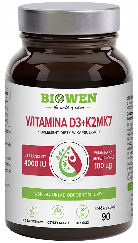BIOWEN вітамін D3+K2MK7 90 CAPS стійкість до кісток
