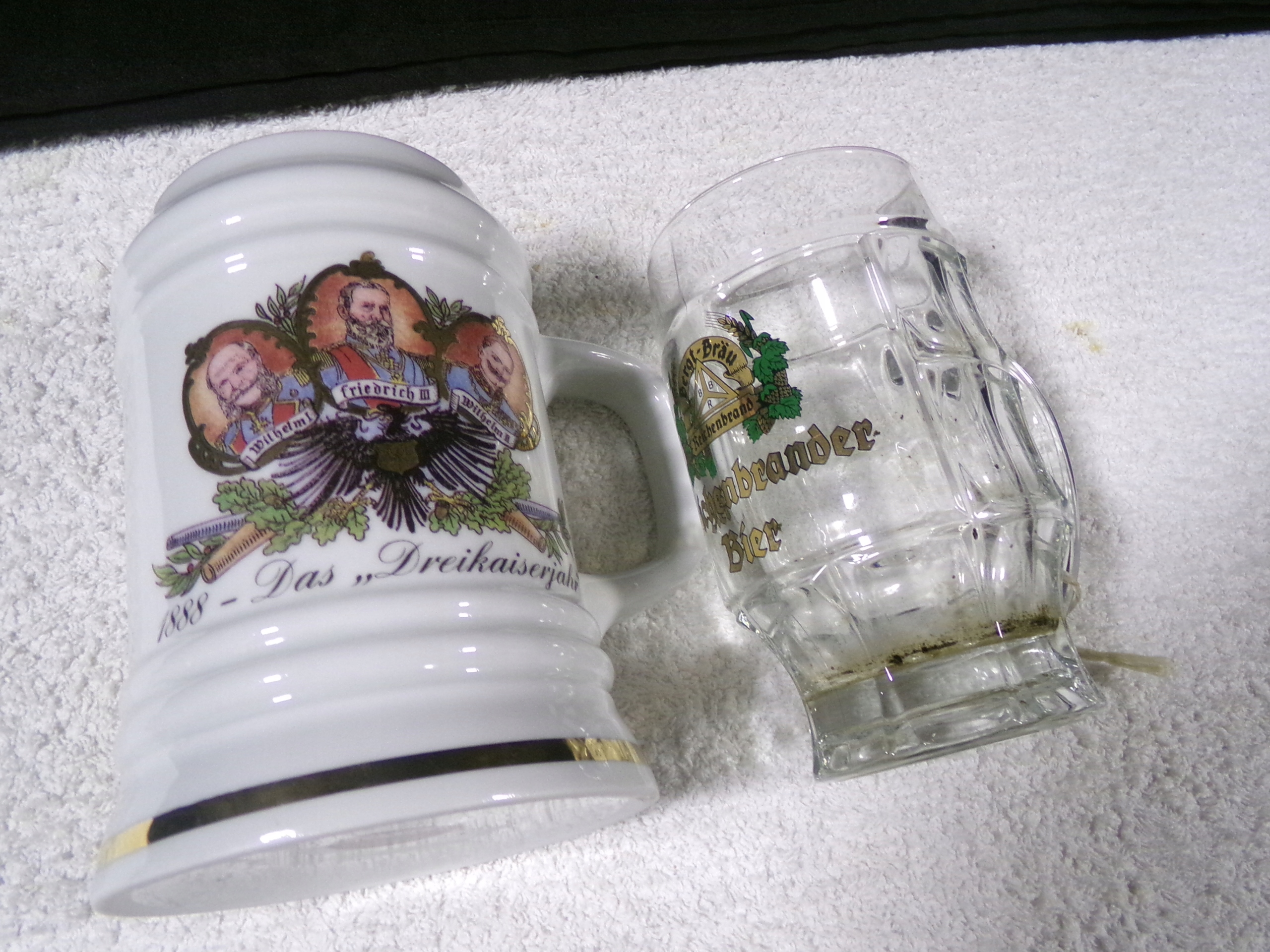 набір стовбурів, виготовлених з кераміки та скла діаметром 7,5 та 7 см, висота 15,5 та 14 см, ємність 0,5 та 0,3 літра, вагою 1,09 кг. Дуже хороший стан збережений, без пошкоджень.