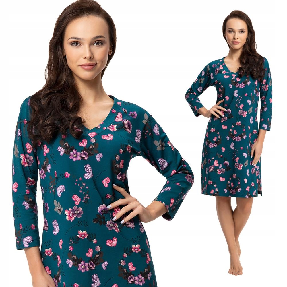 Жіноча сорочка 72 Виготовлена з бавовняної тканини. Модель надзвичайно жіночна і вписується в сучасні модні тенденції. Він ідеально підходить для фігури. Декольте в сирі схудне і підкреслює лінію шиї. 7/8 рукавів. У нижній частині Т -сорочки є практичний і комфортний розріз. Т -сорочка довжина навколо колін. Барвиста жіноча сорочка буде працювати як у домашній спальні, так і в усіх видів поїздок. Після складання він займе мало місця і поміститься в будь -який багаж.