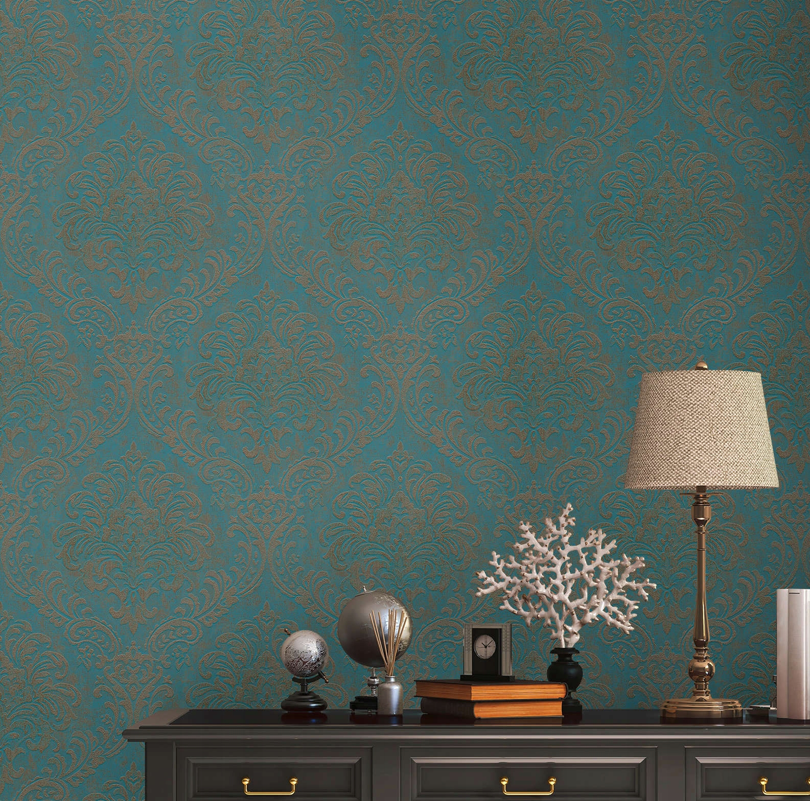 Бірюзові шпалери Золоті опуклі прикраси миють шпалери на неволеному