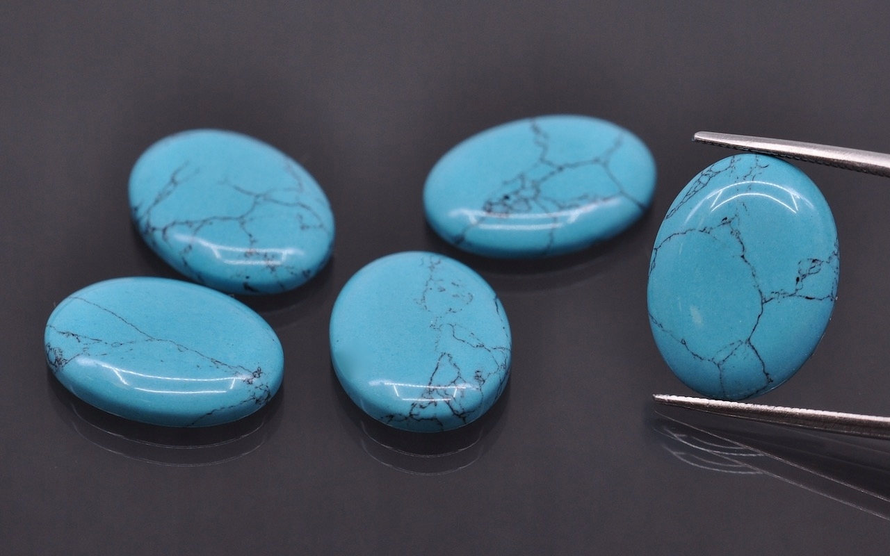 колір: синій з чорними прожилками Розміри: 16х12 мм форма: овальний низький кабошон Вага в грамах: 0,86