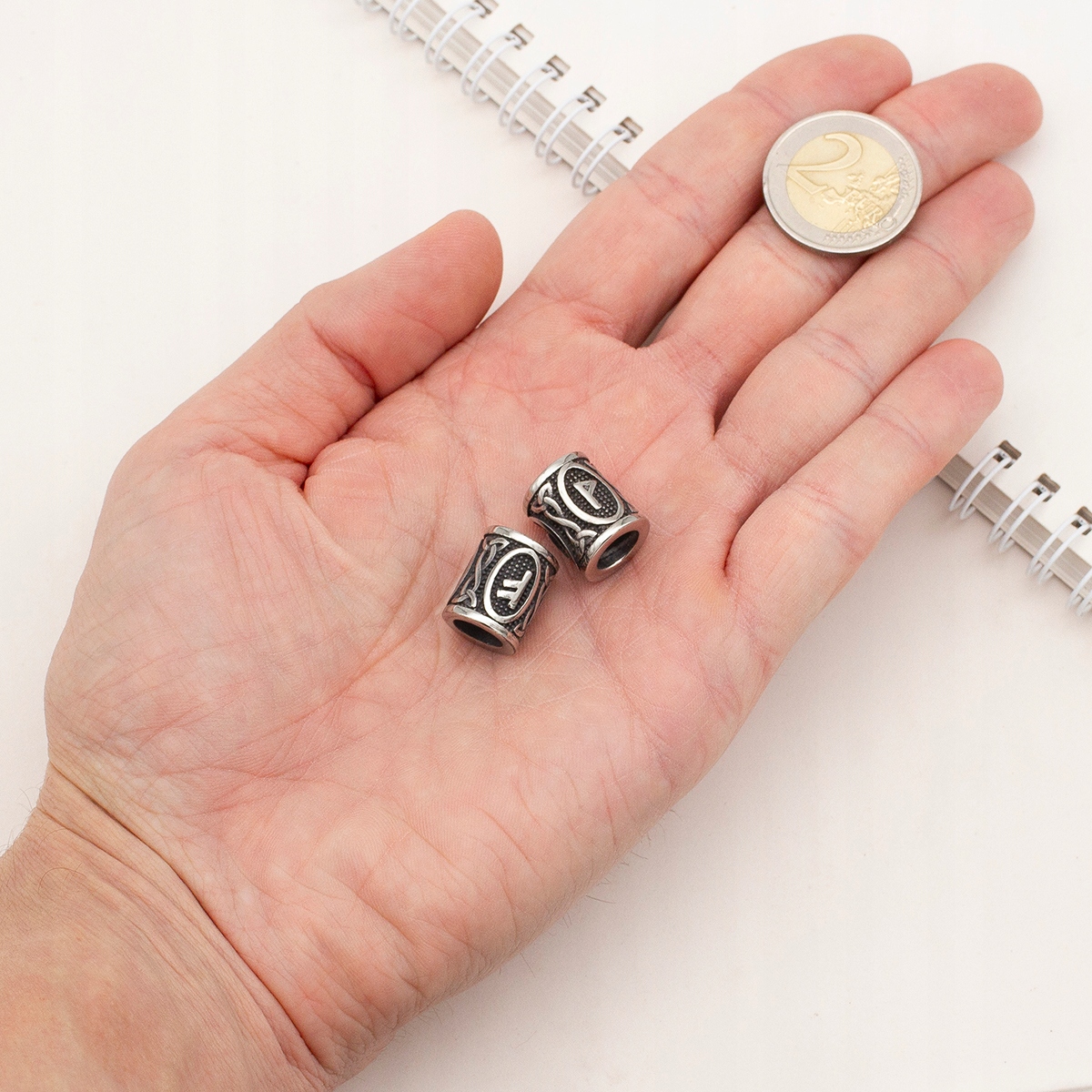Koraliki Skandynawskie Runy Wikingów Futhark, Stal Nierdzewna 16x13mm, 6szt