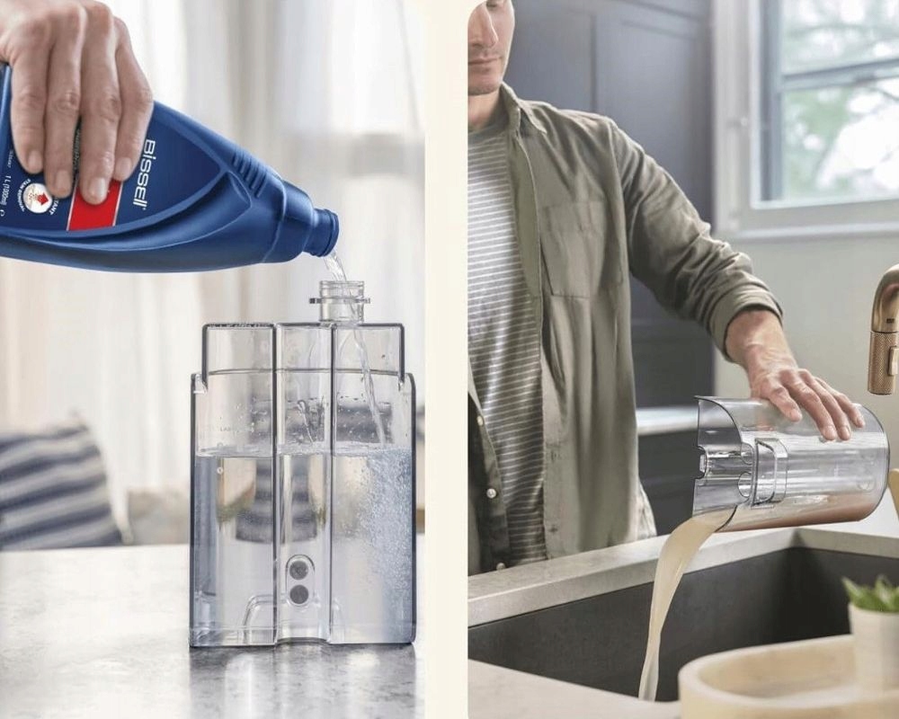 Два окремих резервуарів - для чистої та брудної води - забезпечують гігієнічне та комфортне очищення без ризику змішування рідини. Їх легке заповнення та спорожнення спрощують весь процес ще більше. Набір також включає спеціалізований очищувальний агент Bissell Spot & Plate Pro Oxy, який ефективно підтримує видалення плям, що робить цей пристрій всебічним та ефективним інструментом для щоденного використання.
