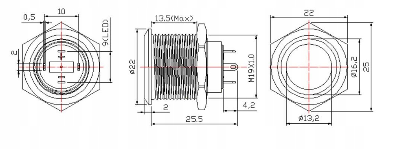 БІСТАБІЛЬНА КНОПКА, ВАНДАЛОСТІЙНА 250В 2А 19х27