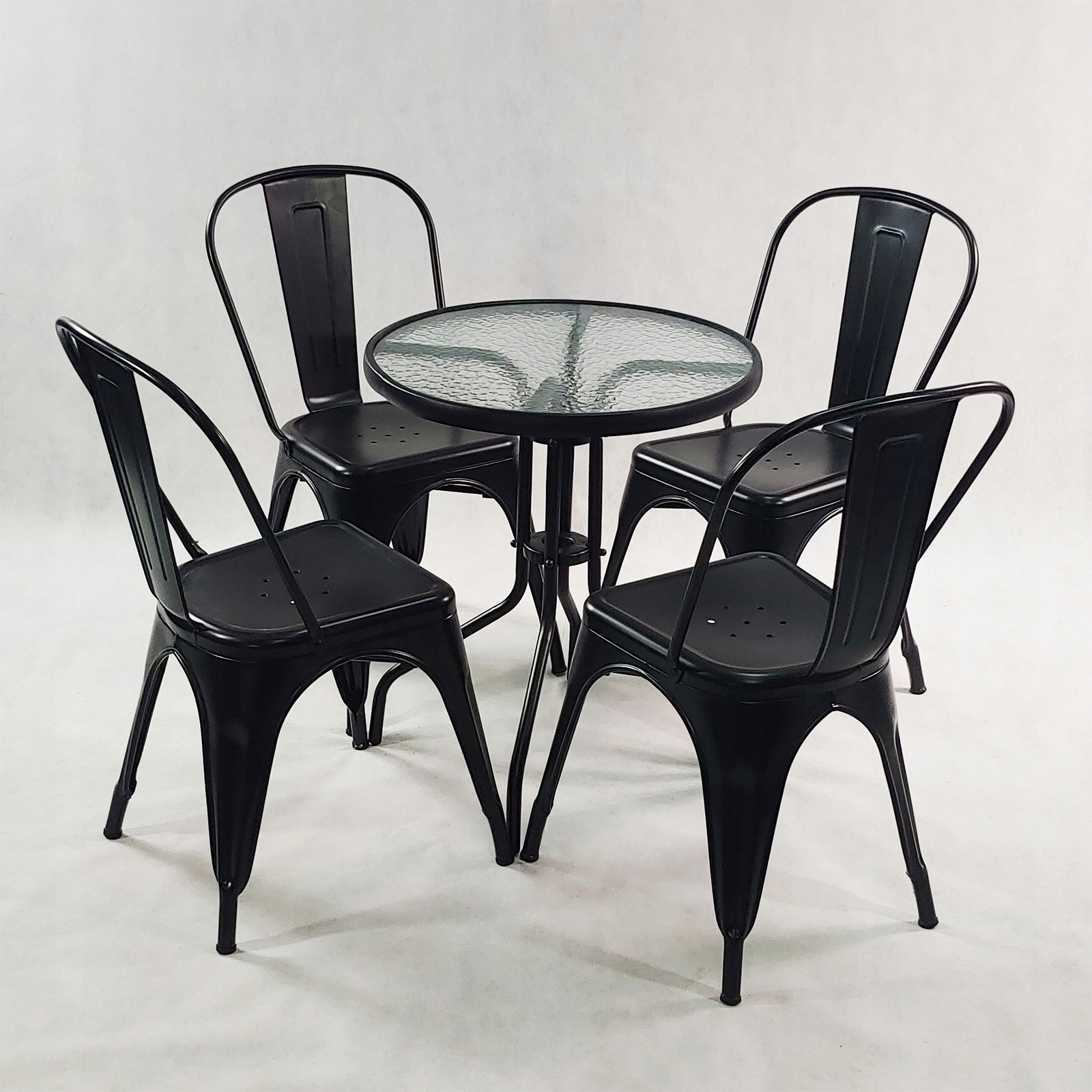 Світло і зручний садовий набір або просто для балкона. Також чудово підходить для кафе, ресторану чи саду. Стільці виготовляються повністю зі сталі, сидіння додатково посилюється зварним хрестом. Стіл - це сталева конструкція, а верх виготовлений із загартованого скла з товщиною 6 мм. Вага таблиці менше 5 кг, а один стілець важить нижче 4 кг. Крім того, стільці, коли це не потрібно, можна зберігати - завдяки його дизайні, один легко ковзає в іншу.