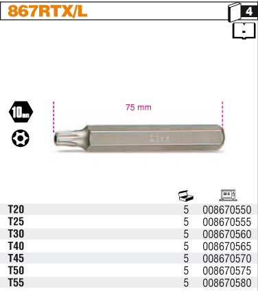 BIT 10MM KLUCZ DŁUGI TORX BITY BETA 867RTX/L T40