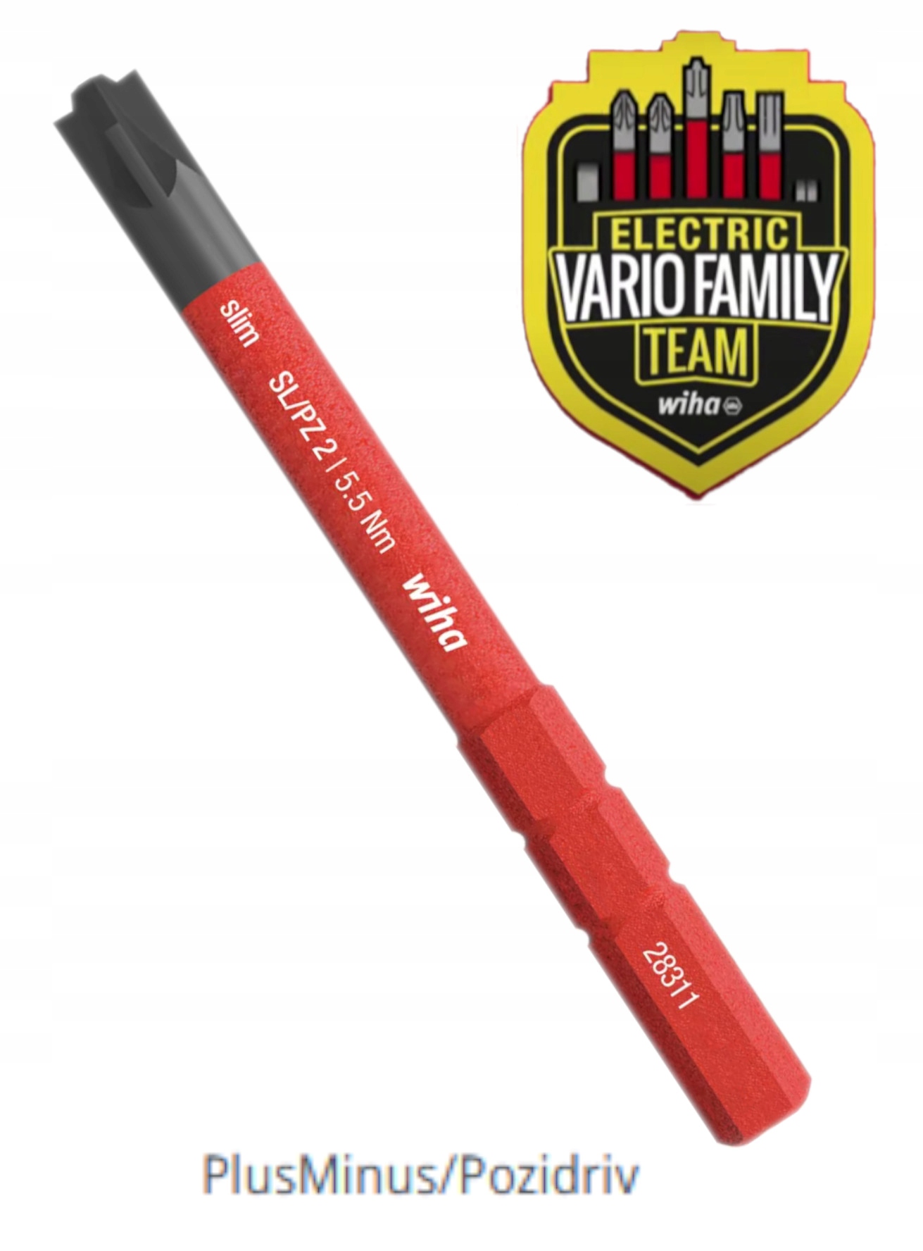 У звичайних викрутках для електриків діаметр вала часто занадто великий, щоб досягти глибоких гвинтів. Однак видалення ізоляції з викрутки заборонено і загрожує вашій безпеці. Гвинти, розроблені спеціально для електриків, виготовлені в технології Slimtechnology, розробленої Wiha, мають захисну ізоляцію, інтегровану з ручкою, товщина якої знижується на 33%. Завдяки укусам Slimbit, ми маємо легкий доступ до глибоко розташованих гвинтів та пружинних елементів. Ізольовані біти Slimbit піддаються контролю одиниці відповідно до міжнародного стандарту IEC 60900 та дозволяють безпечну роботу в області під напругою до 1000 В змінного струму. 6 мм біти Slimbits повинні використовуватися лише в ручках Slimvario® та Slimtorque VDE (динамометрична система VDE).
