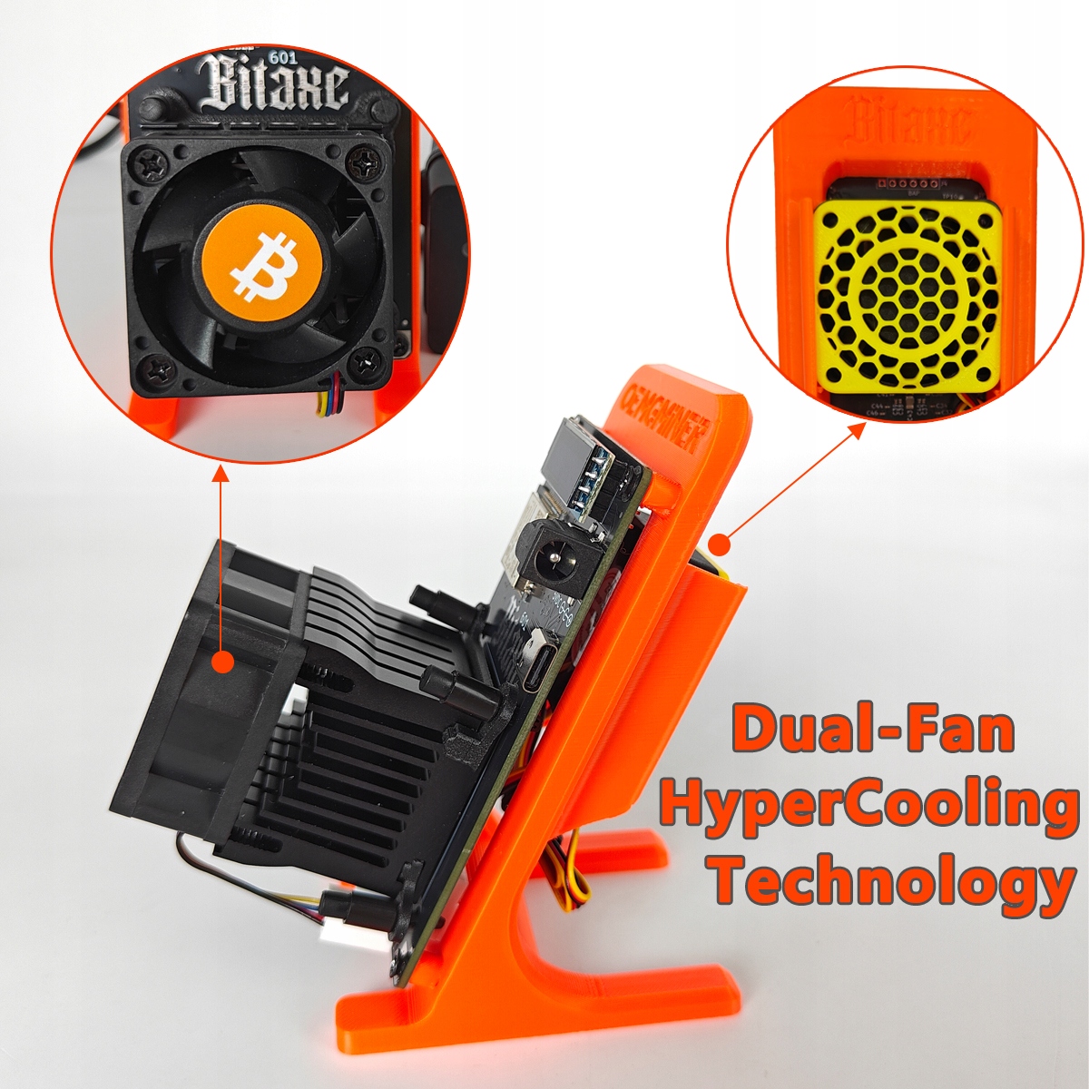 Подвійне турбо -охолодження: подвійний 8 см вентиляторів та поліпшення тепловідвідника покращує охолодження на 40%, підтримуючи мікросхему нижче 65 ° C при 1,5 -му/с при 32 дБ.