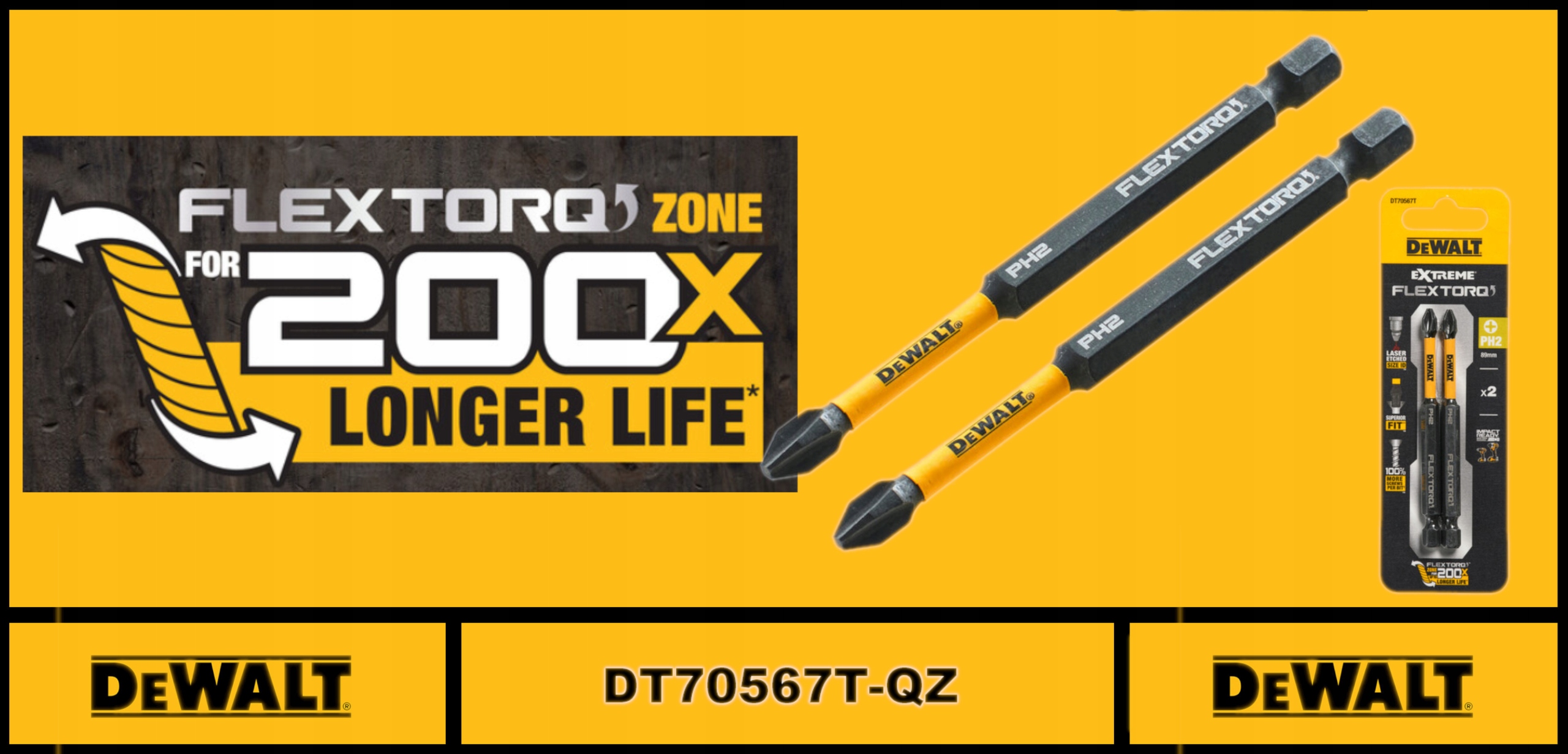 PH2 Bit Bit 89 мм DT70567T-QZ 2 PCS. Dewalt