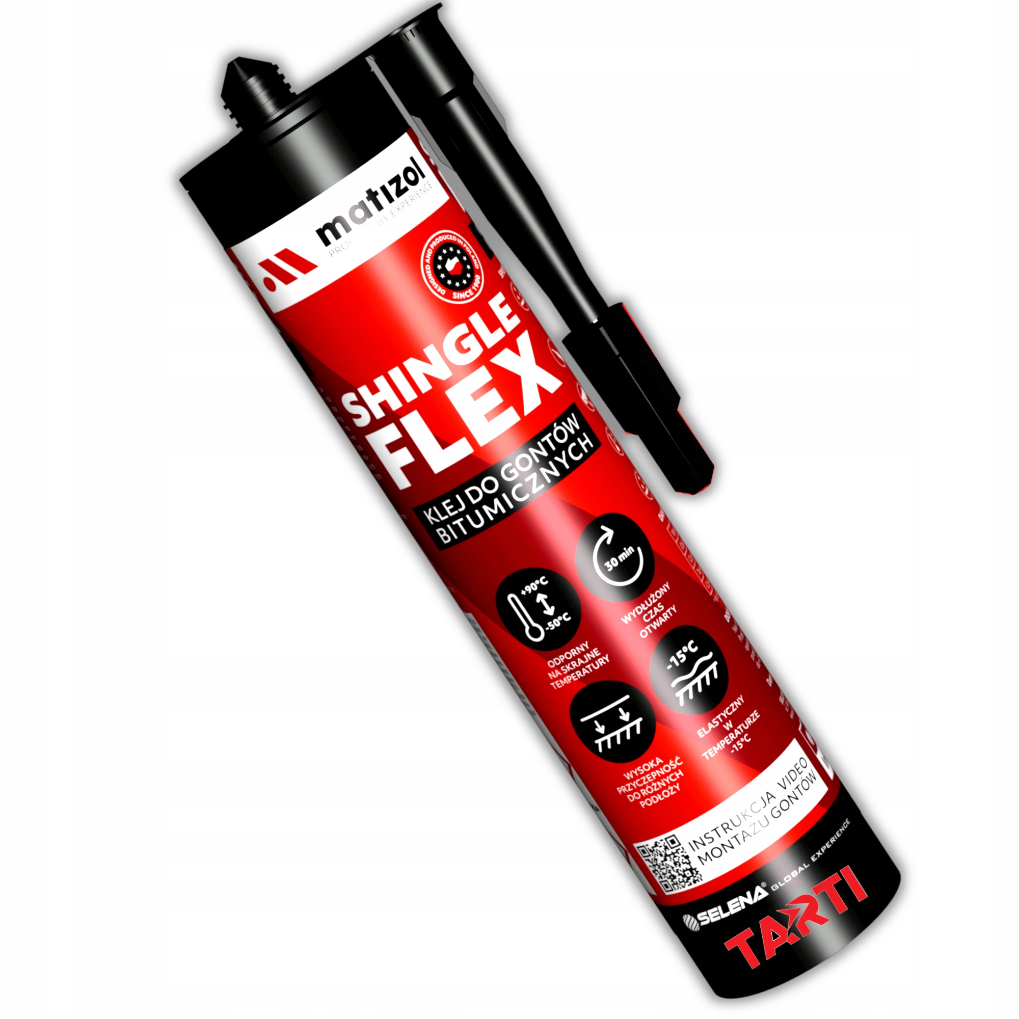 Клей для бітумної черепиці Matizol - високоякісний бітумний клей, який дозволяє здійснювати стаціонарне кріплення черепиці та необхідний для правильної обробки коника, фронтонів даху та злітної смуги до даху, покритого бітумною черепицею. Він також добре працюватиме при монтажі всієї обшивки в складних погодних умовах, на дахах з великими ухилами (>60°) і в районах із сильними вітрами.