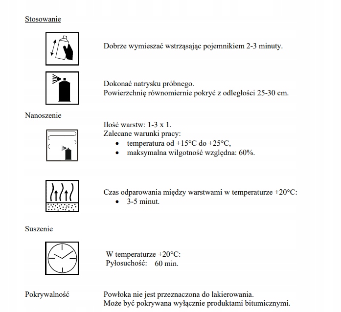 Бітумний спрей з антикорозійними та шумопоглинаючими властивостями. Засіб призначений для швидкого ремонту та антикорозійного захисту шасі легкових автомобілів, автобусів, вантажівок та будівельної техніки. Створює гнучке теплоізоляційне покриття, яке ефективно захищає від несприятливих погодних умов.