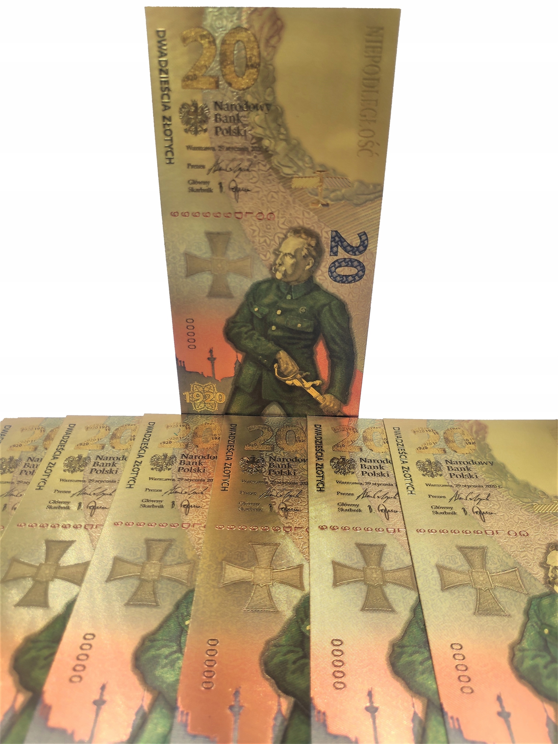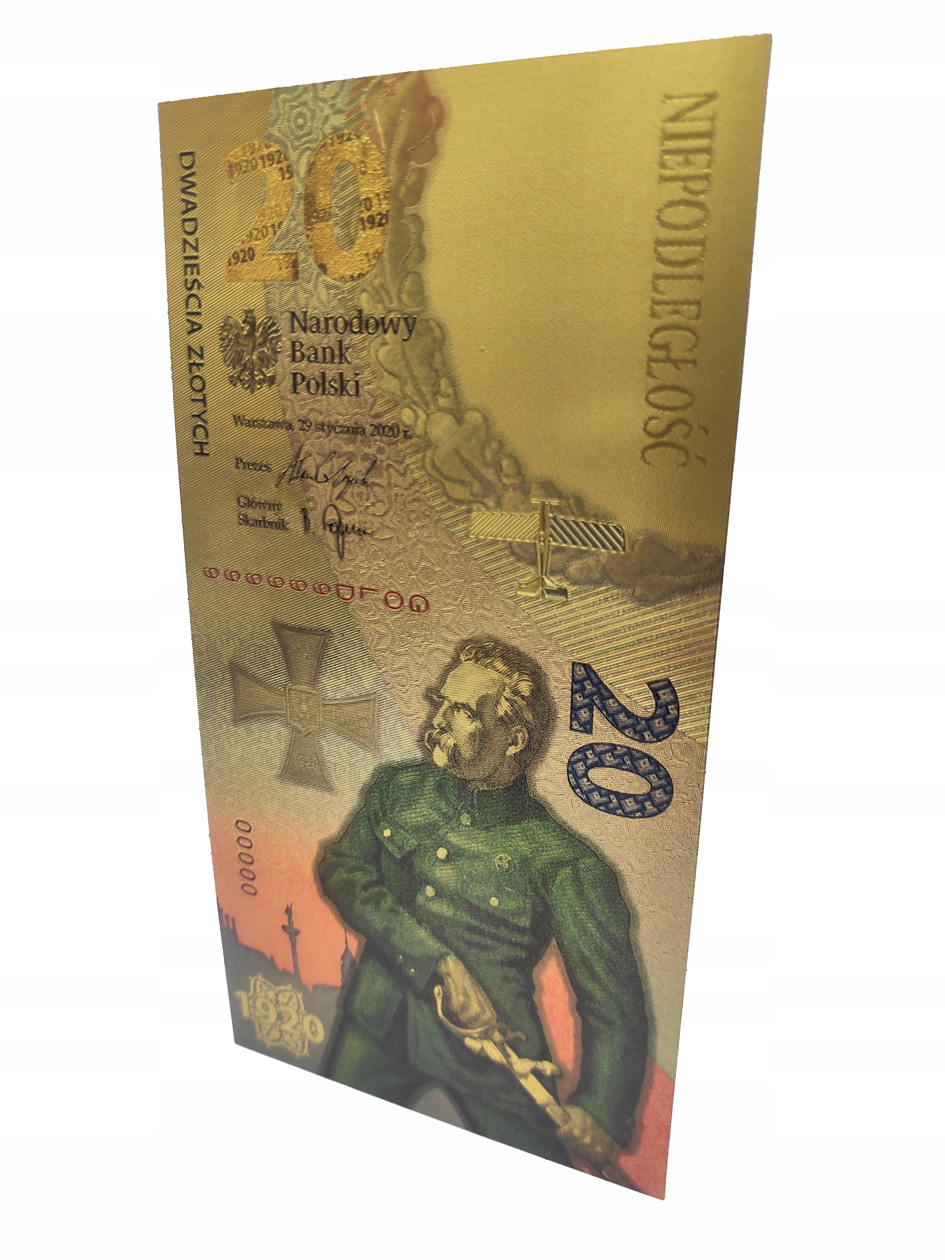 Репліка польської колекційної банкноти 2020 року з тим самим номіналом з ПВХ і покритий золотою фольгою.