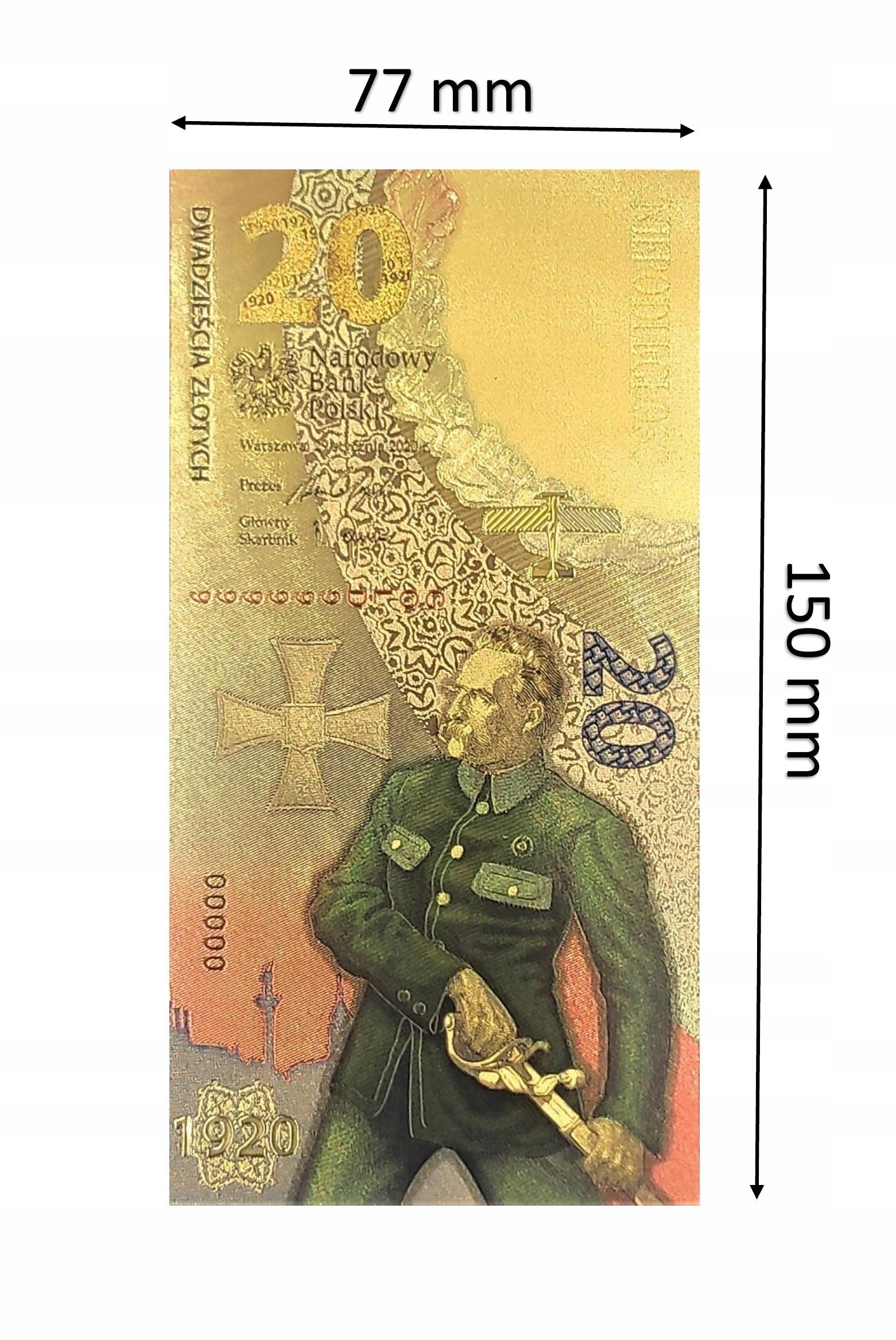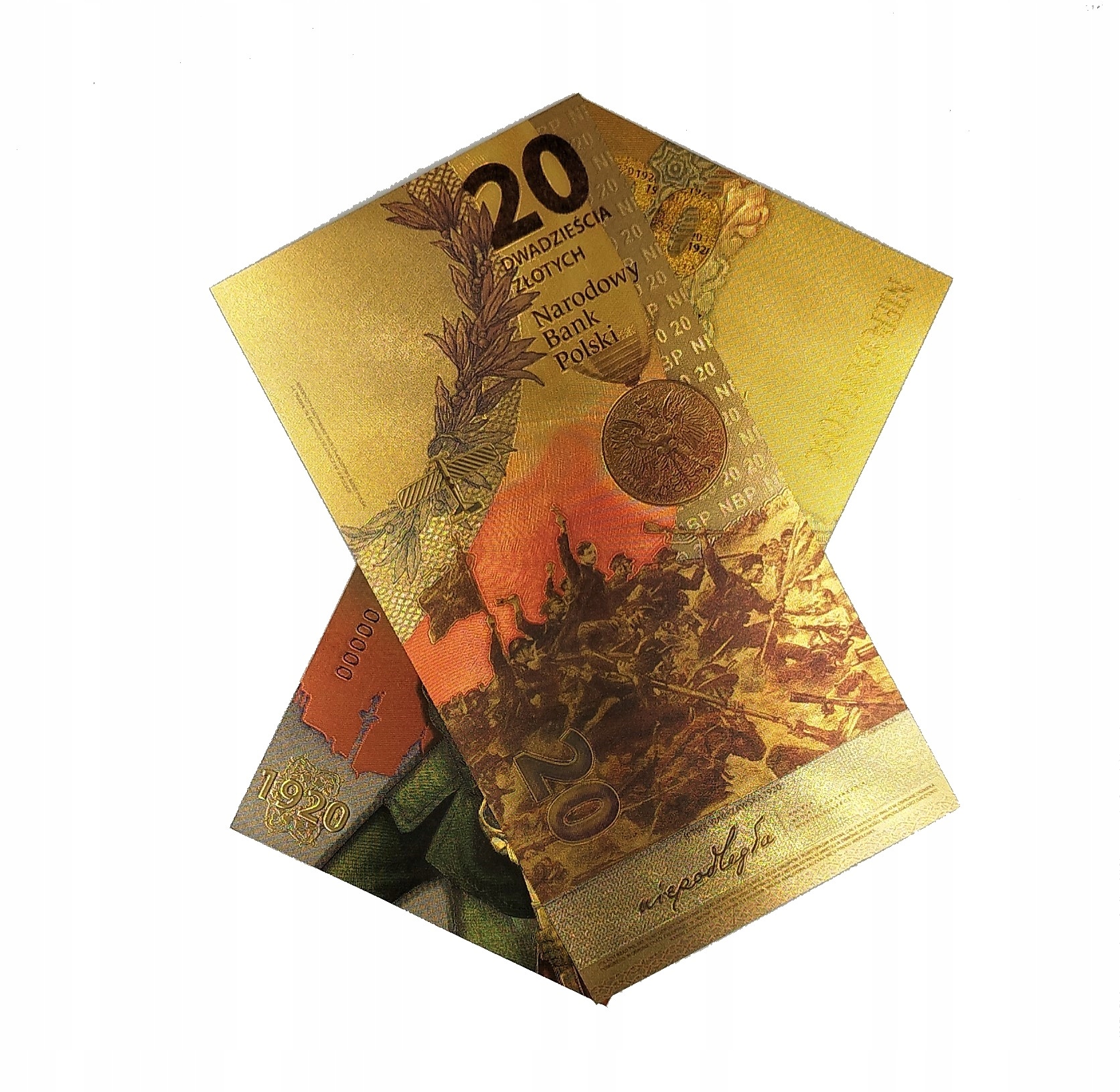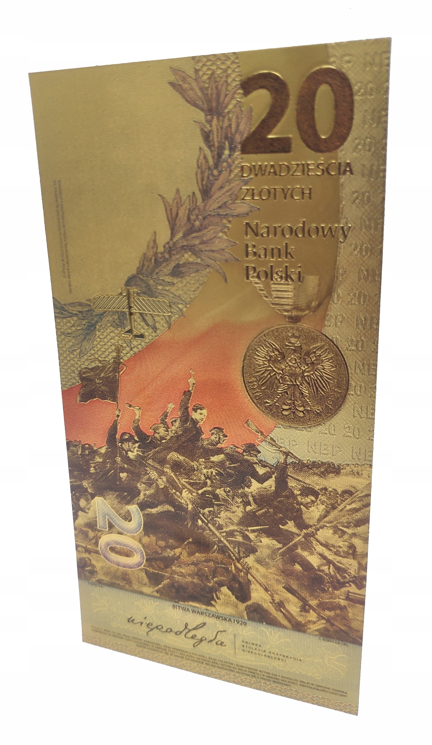 ПОЗОЛОЧЕНА БАНКНОТА НОМІНАЛОМ 20 ЗЛОТИЙ БИТВА ПІД ВАРШАВОЮ