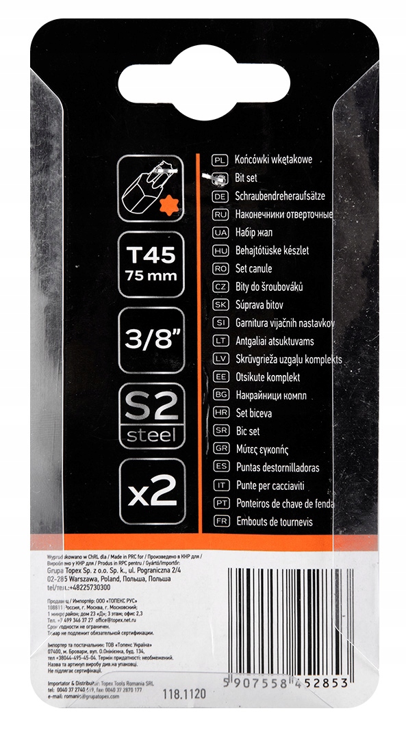 Насадка TORX T45 x 75 мм, S2 x 2 шт.