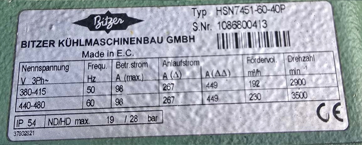 1. Набір компресора Bitzer: 3x hsn7451-60-40p