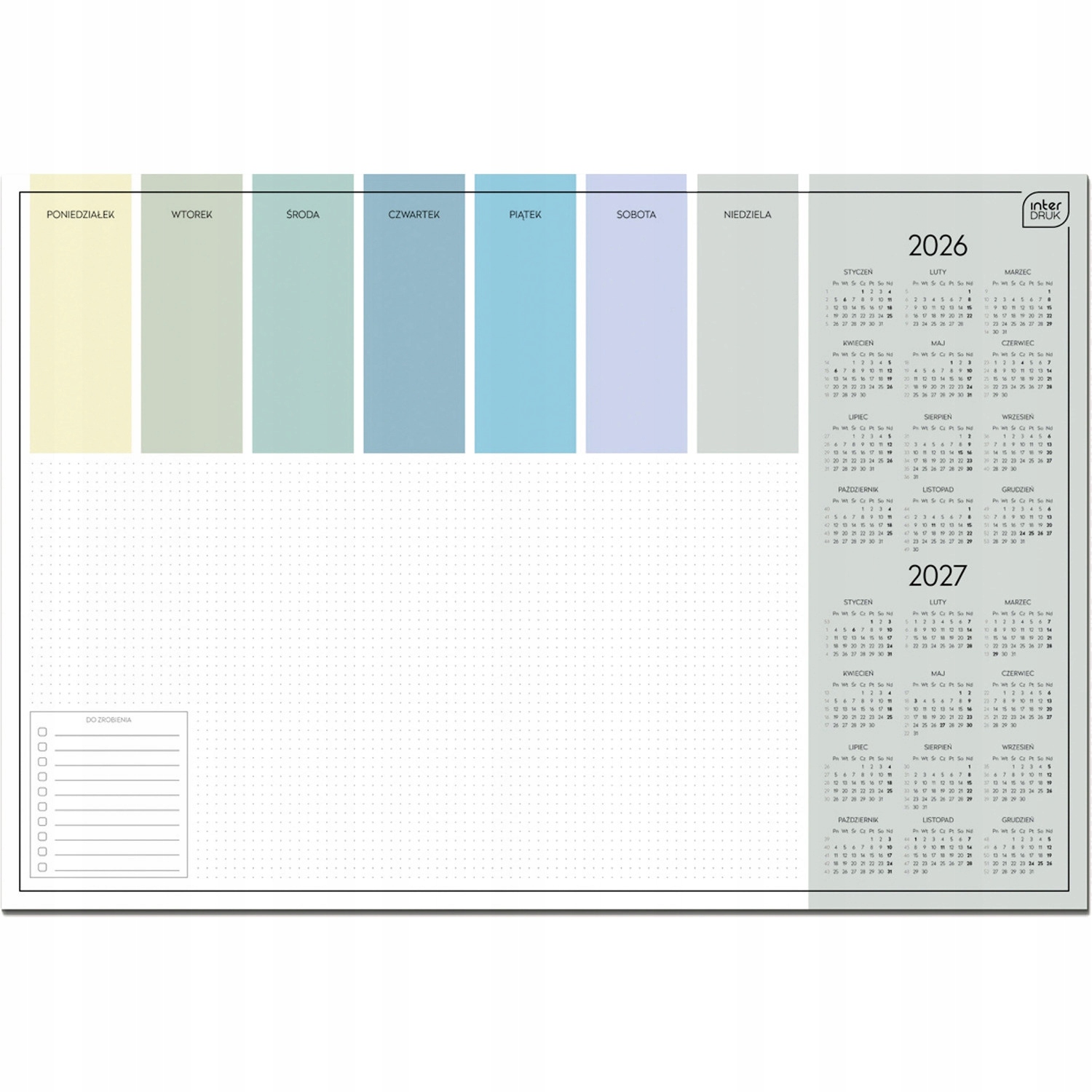 - На робочому столі немає заздалегідь визначених дат, тож ви можете легко зробити тиждень або два перерви в плануванні, не відчуваючи, що витрачаєте папір. Товщина паперу 90 гр.