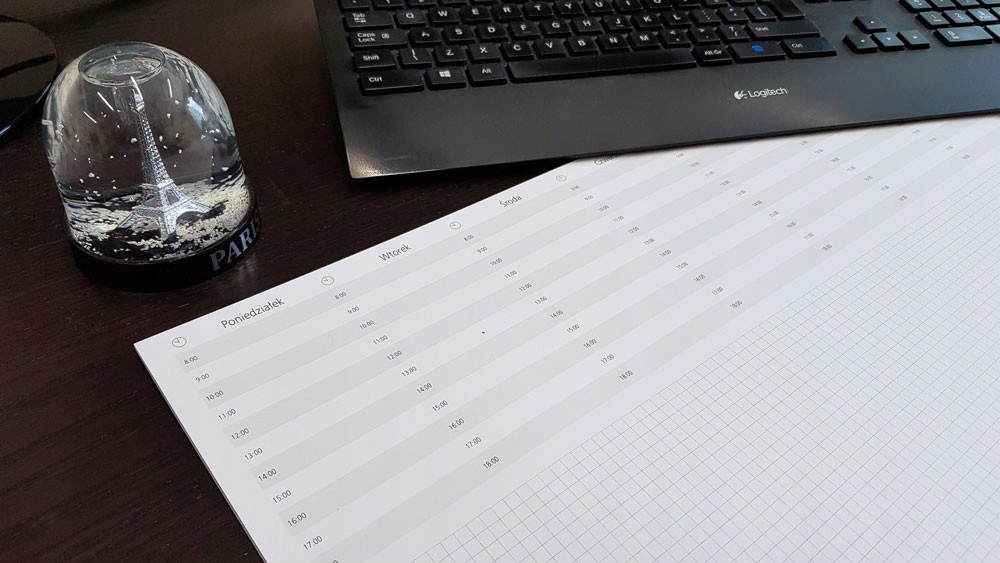 - вгорі тижневий планувальник із місцем для нотаток (погодинний поділ),