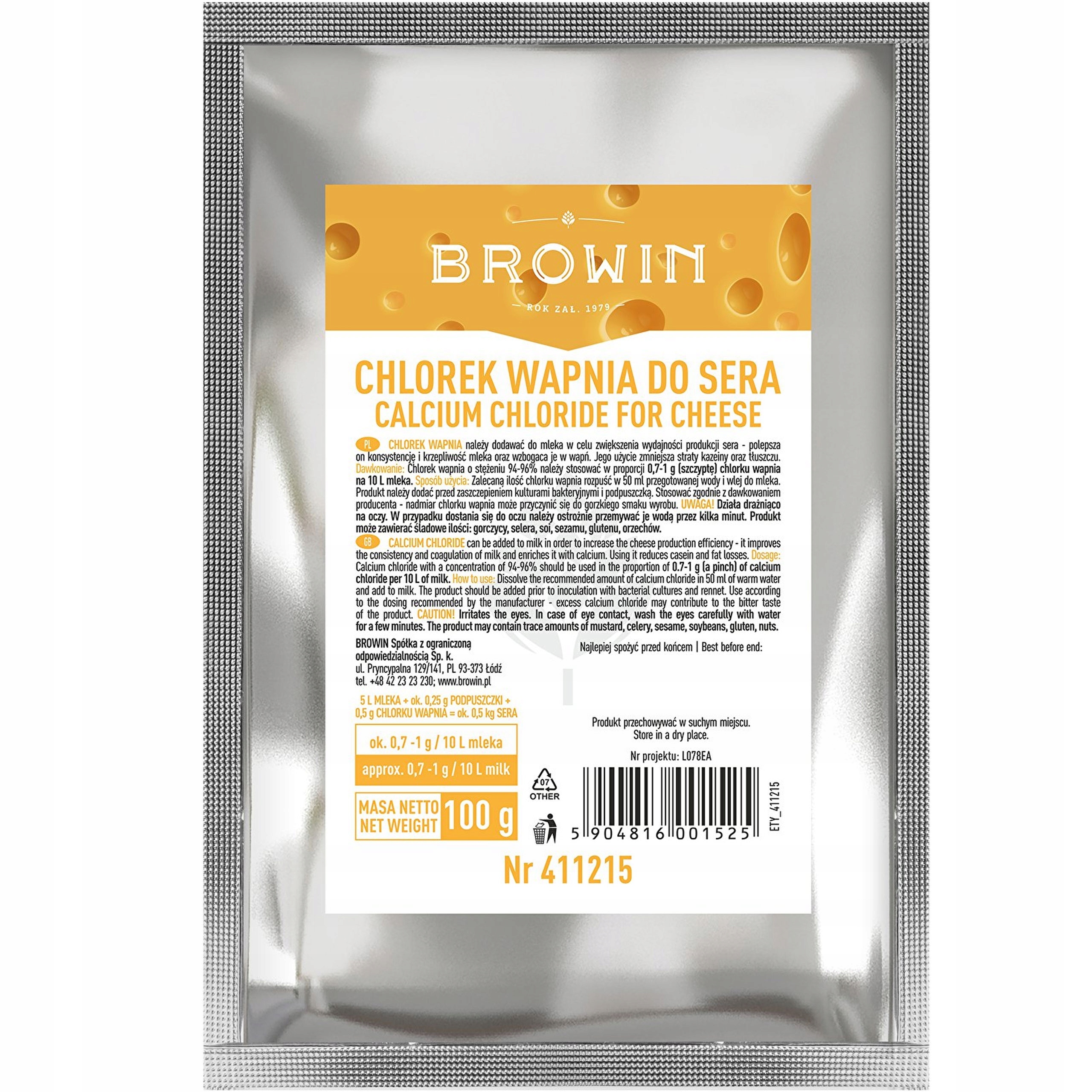 Просматривая «Биовин хлорид кальция для домашнего сыра 100 г», вы можете быть уверены, что данный товар из каталога «Сычужный фермент и добавки» будет доставлен из Польши и проверен на целостность. В цене товара, указанной на сайте, учтена доставка из Польши. Внимание!!! Товары для Евросоюза, согласно законодательству стран Евросоюза, могут отличаться упаковкой или наполнением.