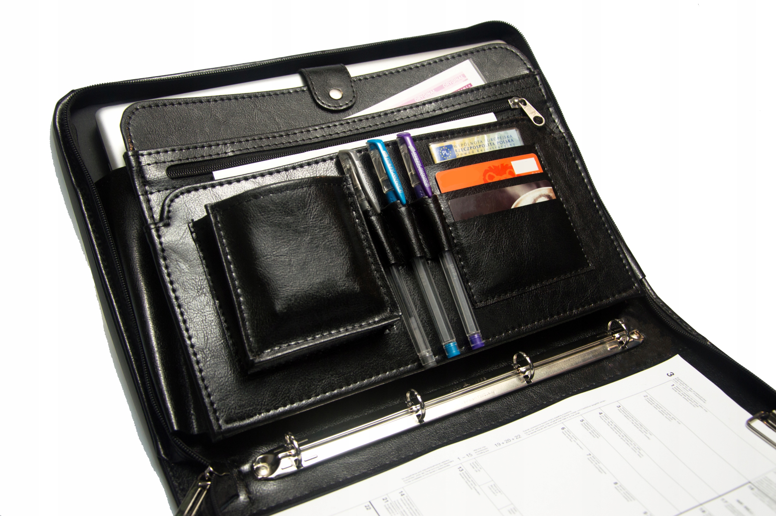 Відділення закривається на блискавку найвищої якості. Він оснащений швидкозшивачем із 4 кільцями та затискачем для документів (наприклад, CMR, накладних), карток тощо.