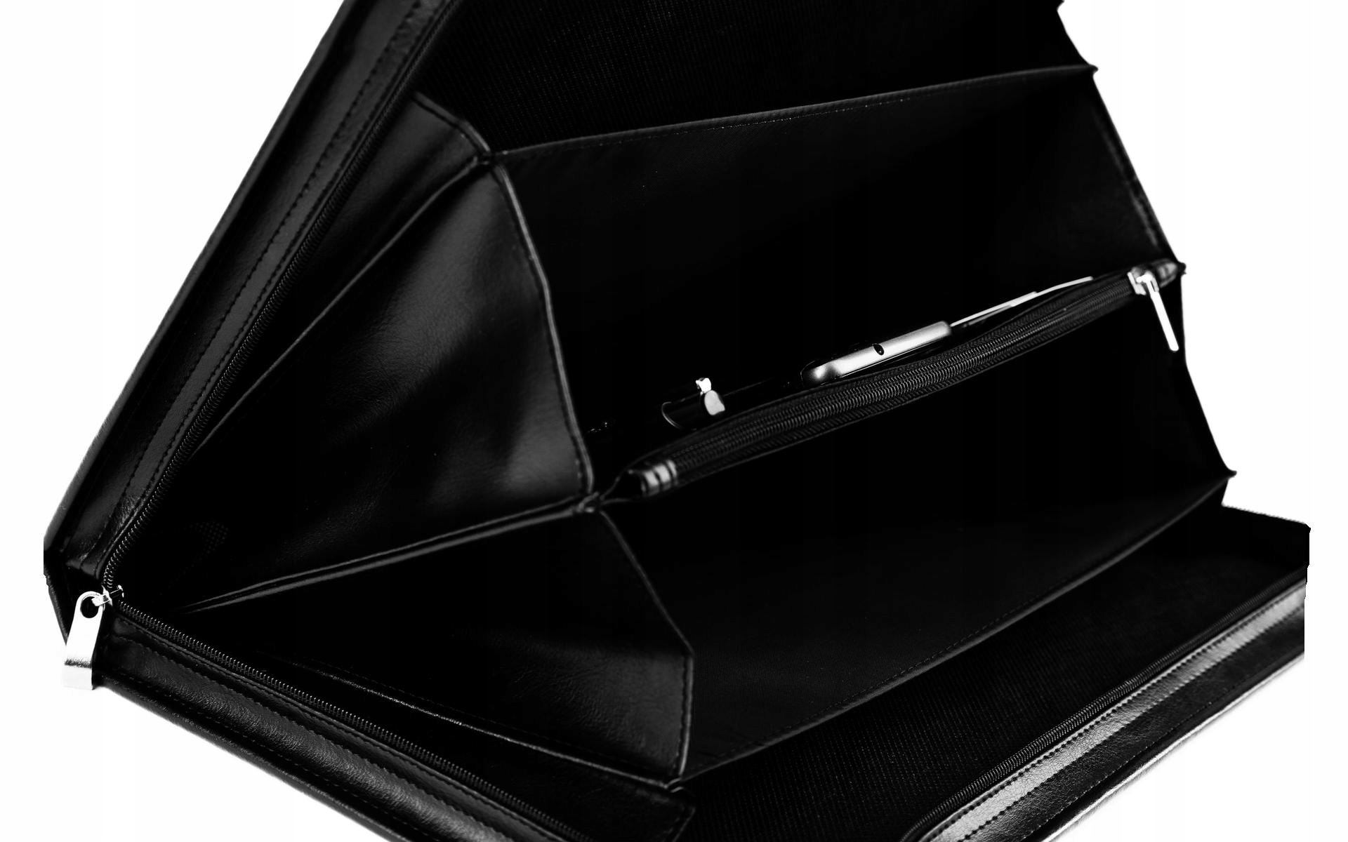 Всередині бівуара є 4 кишені для документів А4, кишеня на блискавці, місце для візиток, ручок і мобільного телефону. Закривається на якісну блискавку.