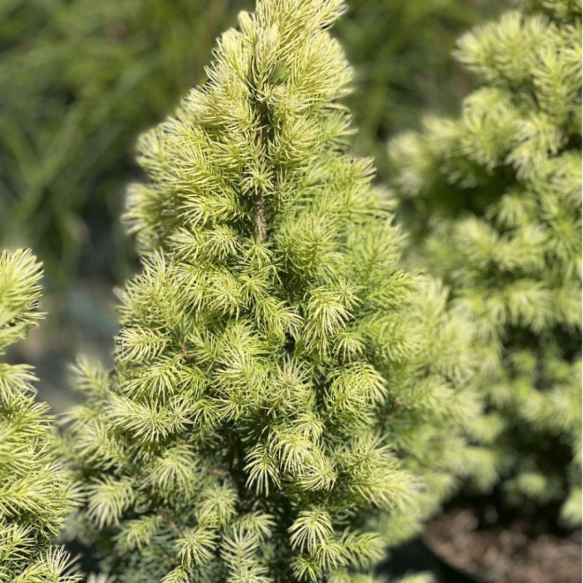біла ялинка з білою з конічною звичкою та жовтим ростом