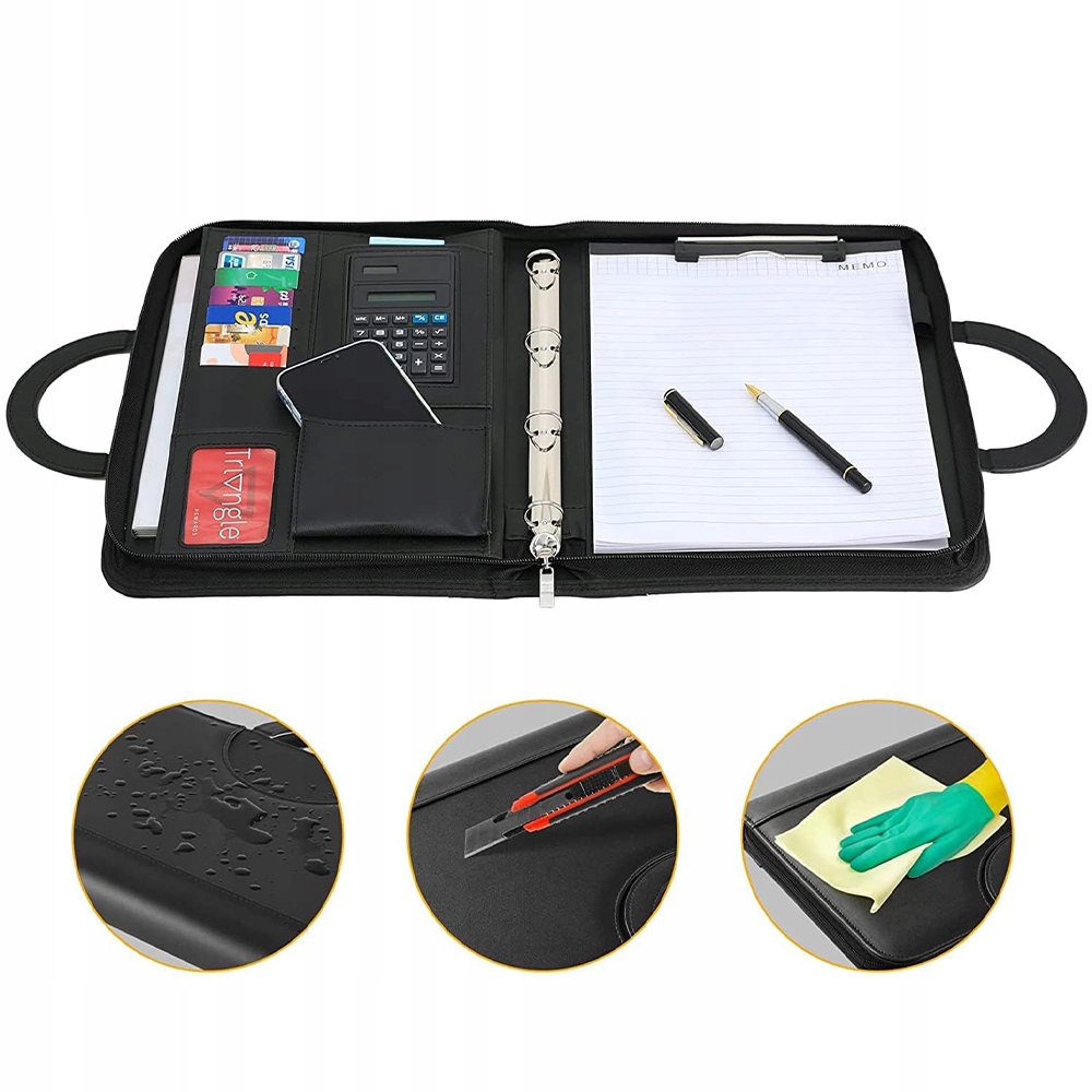 - Папка конференції A4 виготовлена із зовнішньої сторони шкіри PU, яка є водонепроникною та легкою для очищення. ручка, 4 кільця, 9 карткових відсіків та 10 прозорих кишенькових документів.