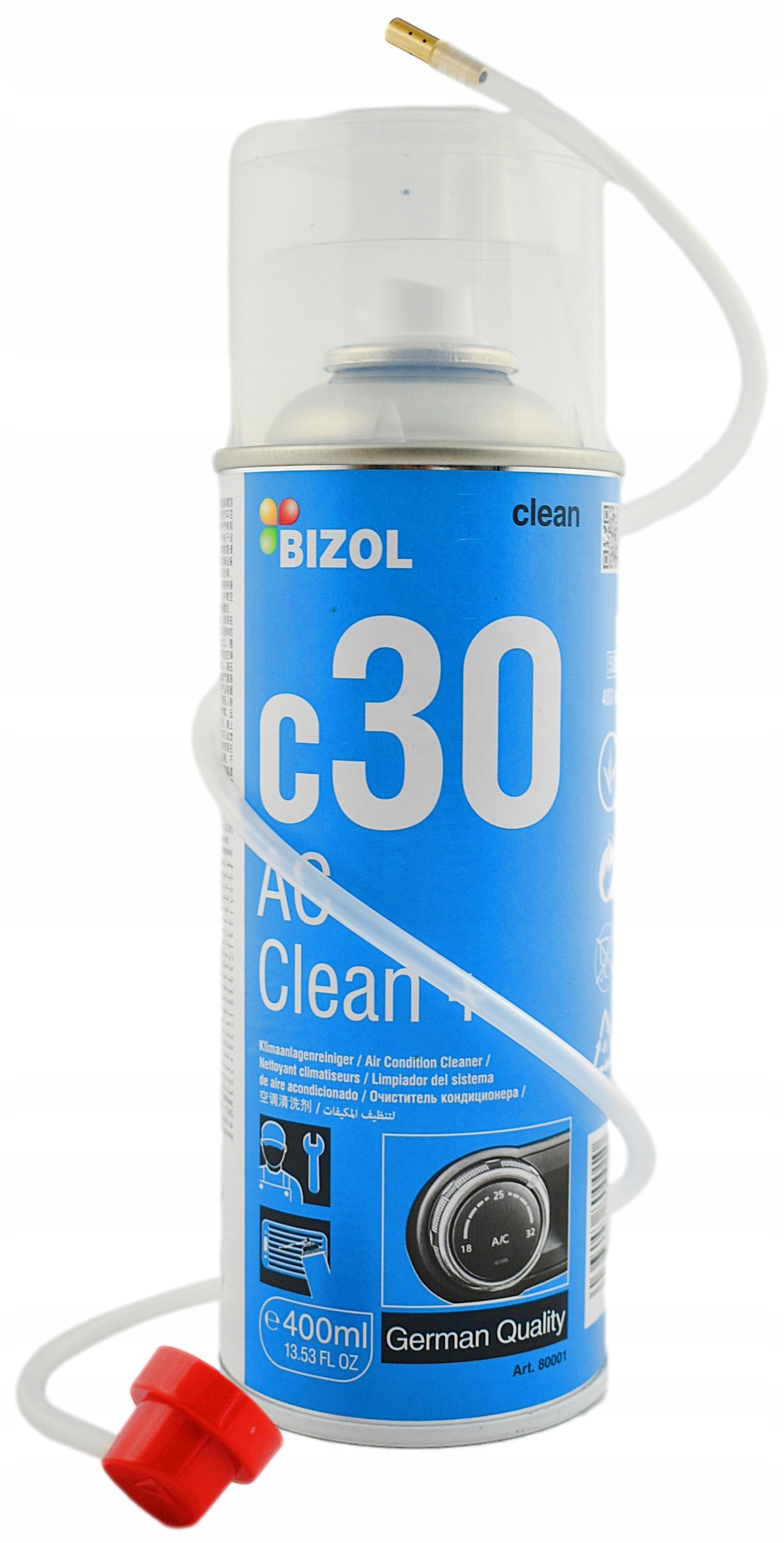 - Перед використанням вимкніть прилади або вимкніть автомобіль. Струсіть перед використанням; якщо використовується в автомобілі, зніміть пилковий фільтр. Обприскайте випарник кондиціонера, за допомогою доданого зонда продезінфікуйте вентиляційні канали. В автомобілях, обладнаних охолоджуваним бардачком, залишайте його відкритим. Після нанесення не заводити автомобіль принаймні 30 хвилин. За цей час з системи випарується піна. Засіб має аромат свіжих апельсинів. Ми рекомендуємо чистити кондиціонер кожні 6 місяців.