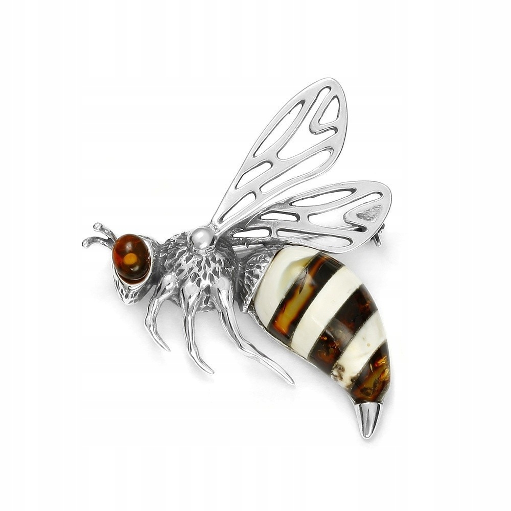 СРІБНА БЖДІЛА БРОШКА З БУРШТИНОМ