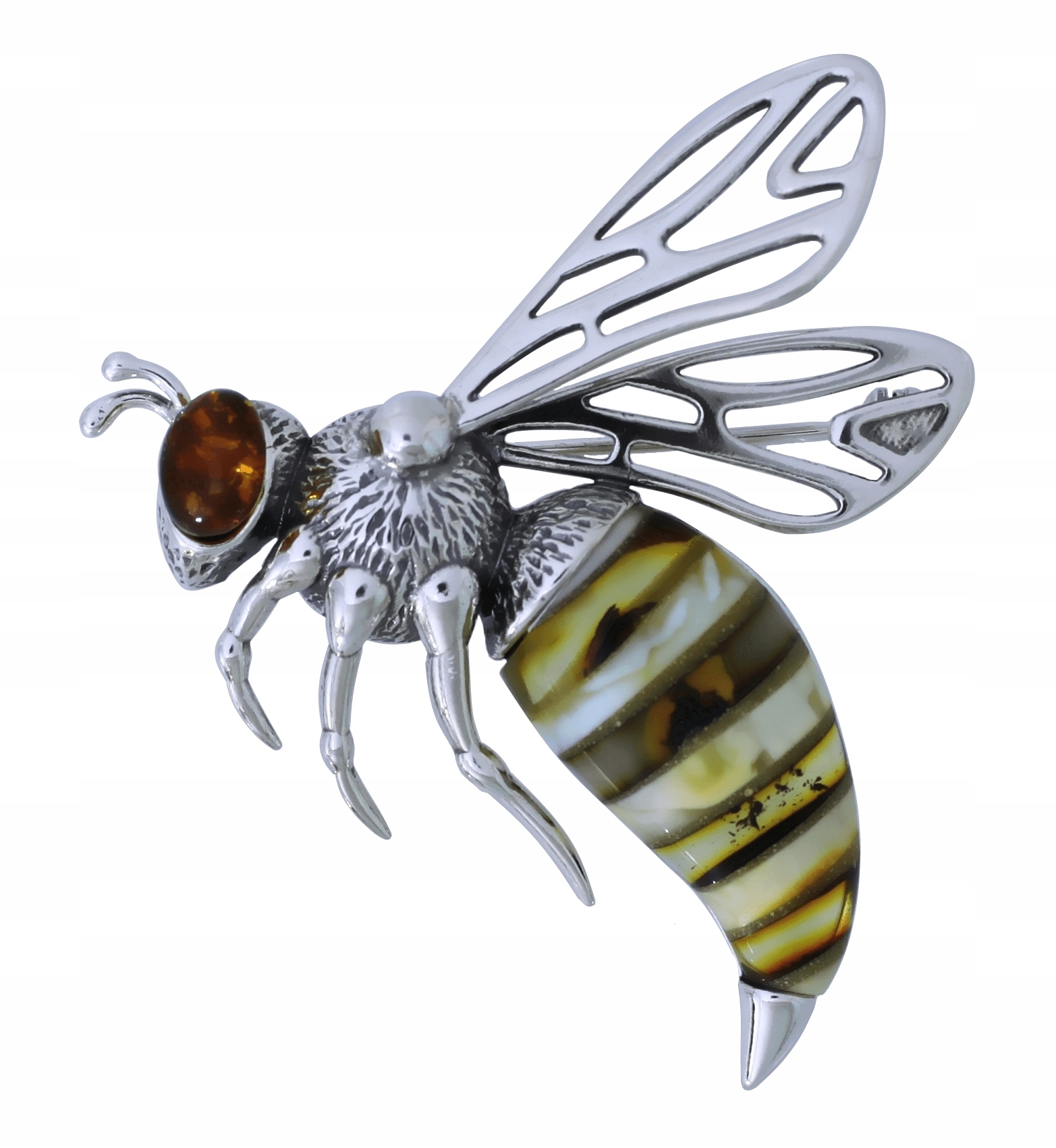 СРІБНА БЖДІЛА БРОШКА З БУРШТИНОМ