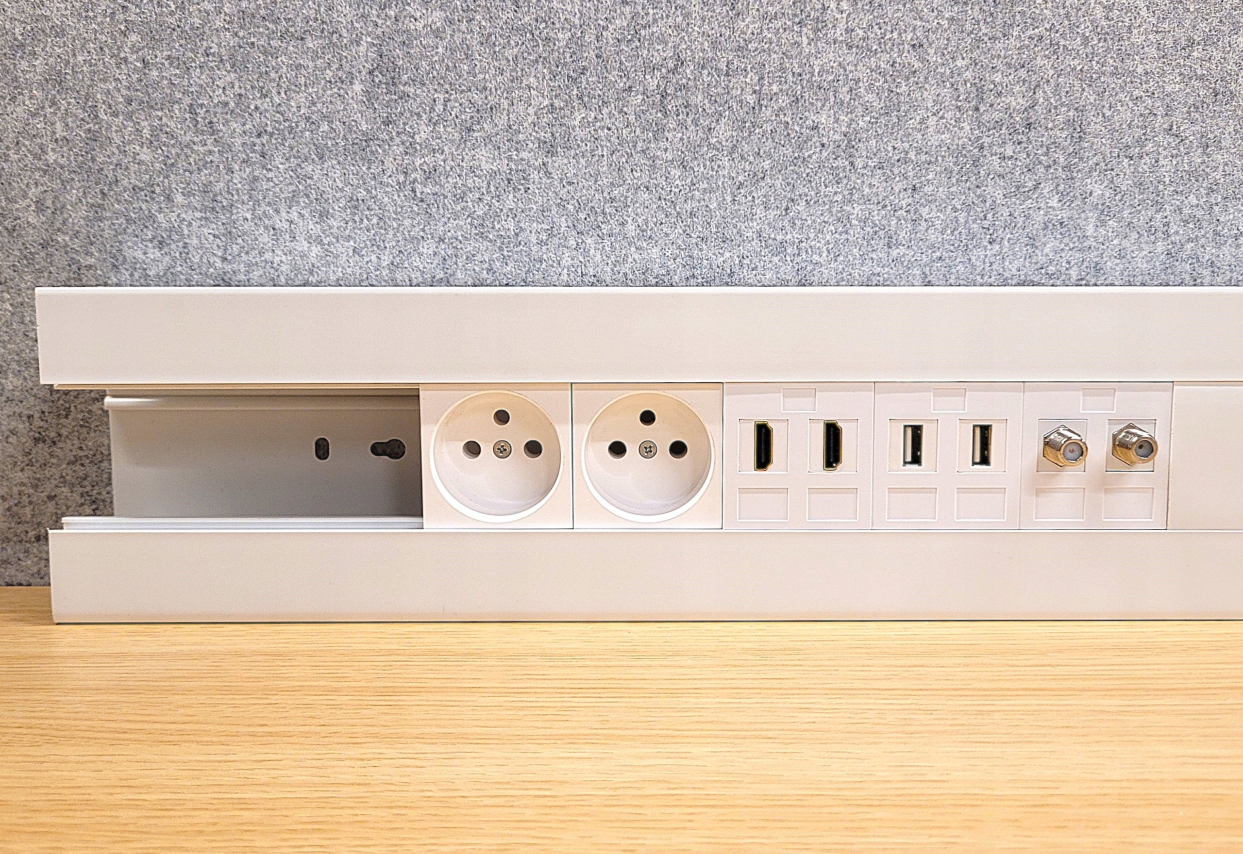 Правильно розроблений корпус дозволяє побудувати точки розподіл , оснащений будь -якими модулями , наприклад Електричні розетки 230V RJ45, або музейні розетки (HDMI, USB, RCA, XLR тощо). Вони не потребують додаткових елементів , таких як підтримка або кадри, завдяки якому ми заощаджуємо час та мінімізуємо витрати.