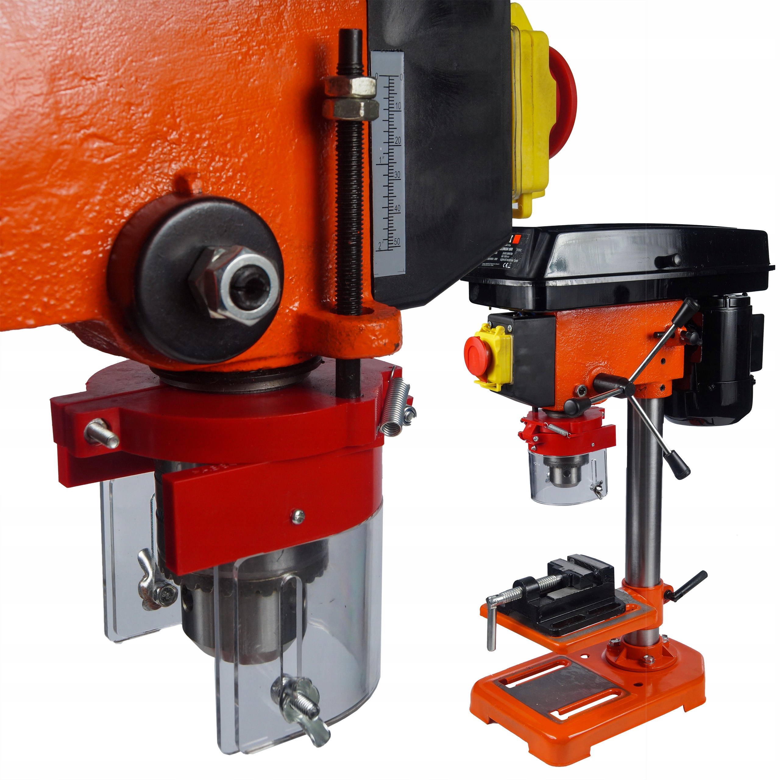 Крім того, свердло оснащене зручною вертикальною направляючою, регулюванням висоти стільниці, вирізами в стільниці для більш надійного кріплення заготовки та зручною боковою ручкою. Все це доповнюється безпечною, важкою та стабільною основою пристрою.