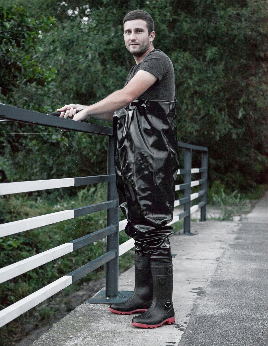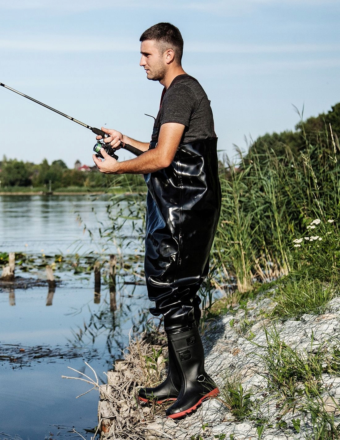 МОДЕЛЬ МОДЕЛЬ SB01 СИЛЬНА/ ПЛЮСИ. Дивовижні, міцні ботфорти з незмінно привареними башмаками, регульованими лямками та еластичною стрічкою, яка регулює окружність грудей. Він доступний у чорному кольорі в розмірах від 39 до 48. Виготовлений з високоякісного матеріалу НОВОГО ПОКОЛІННЯ ГУМИ, який є новою концепцією матеріалів з ПВХ покриттям. Матеріал характеризується дуже високою міцністю на розрив, верхній шар матеріалу стійкий до порізів і проколів. Забезпечує повний захист при несприятливих погодних умовах. Внутрішня кишеня дозволяє зберігати документи або дрібні речі, які ви хочете мати під рукою. Технологія двостороннього зварювання підвищує міцність швів. Повністю водонепроникний, для проходження через воду. Вони характеризуються дуже хорошими протиковзкими властивостями. Міцна підошва з товстим протектором гарантує стійкість навіть на м'яких і слизьких поверхнях. Міцний матеріал забезпечує тривале і комфортне використання без необхідності догляду. Конструкція дозволяє швидко надягати і знімати. Комфортні і водонепроникні, вільно пересуваються, вейдерси незамінні для рибалок, що ловлять рибу на річках, використовуються для риболовлі та важких рибальських робіт. Вони надають найбільші можливості в зоні лову. Необхідне обладнання для кожного рибалки, який хоче ефективно ловити рибу на спінінг або нахлистом. Вони також добре працюватимуть під час миття та чищення у системах водопостачання, каналізації та комунальних послуг.