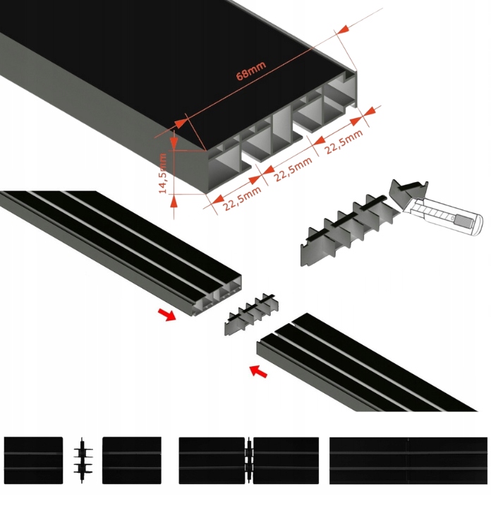 ЧОРНИЙ Стельовий карниз з кришкою 2-рейковий стельовий карниз з кришкою 240